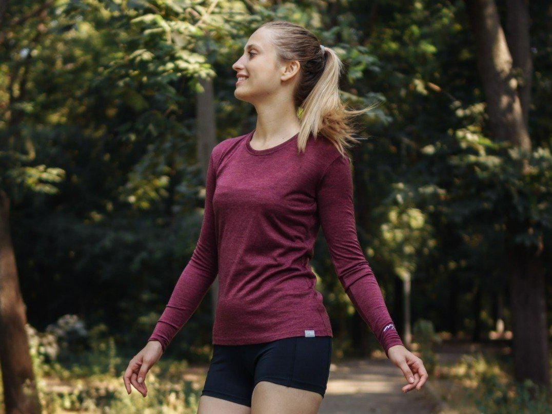 Merino wool, lightweight 165 g/m² (grams per square meter) - 100% superfine Merino fabric provides all day comfort and no itch. The natural wicking and odor-resistant properties of Merino long sleeve top allow it to absorb moisture better than any other fabric, keeping you dry and fresh.