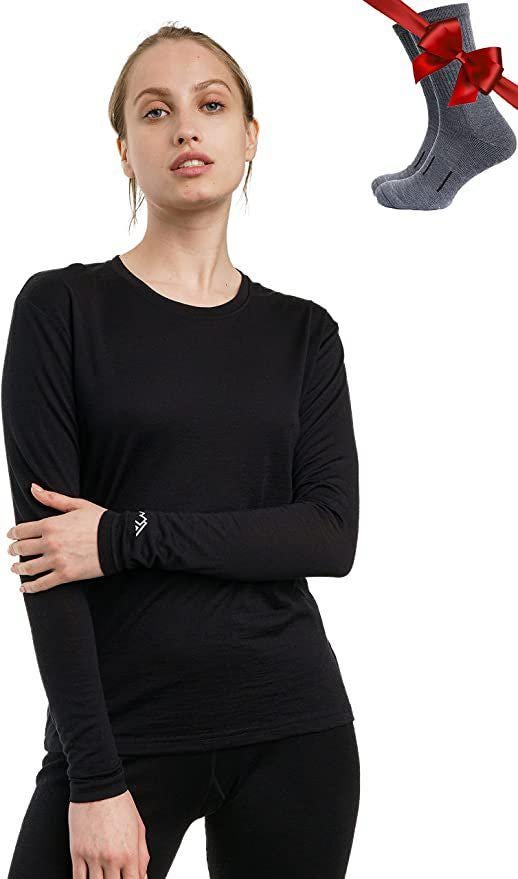 Package includes women Merino wool base layer Lightweight 165 g/m² + Merino wool hiking socks.