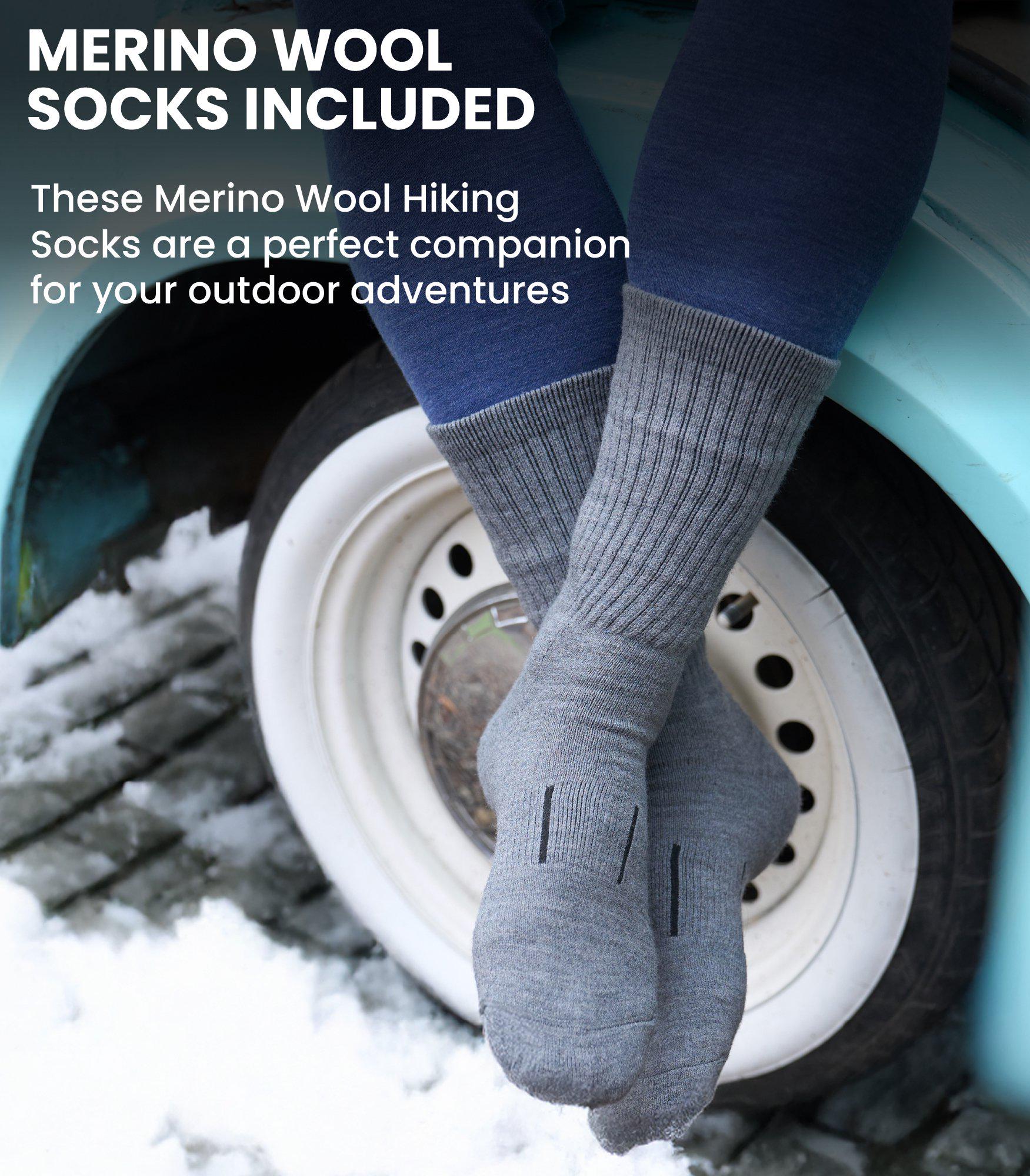 Package includes extremely lightweight base layer thermal t-shirt 165 g/mΒ² + Merino wool hiking socks.