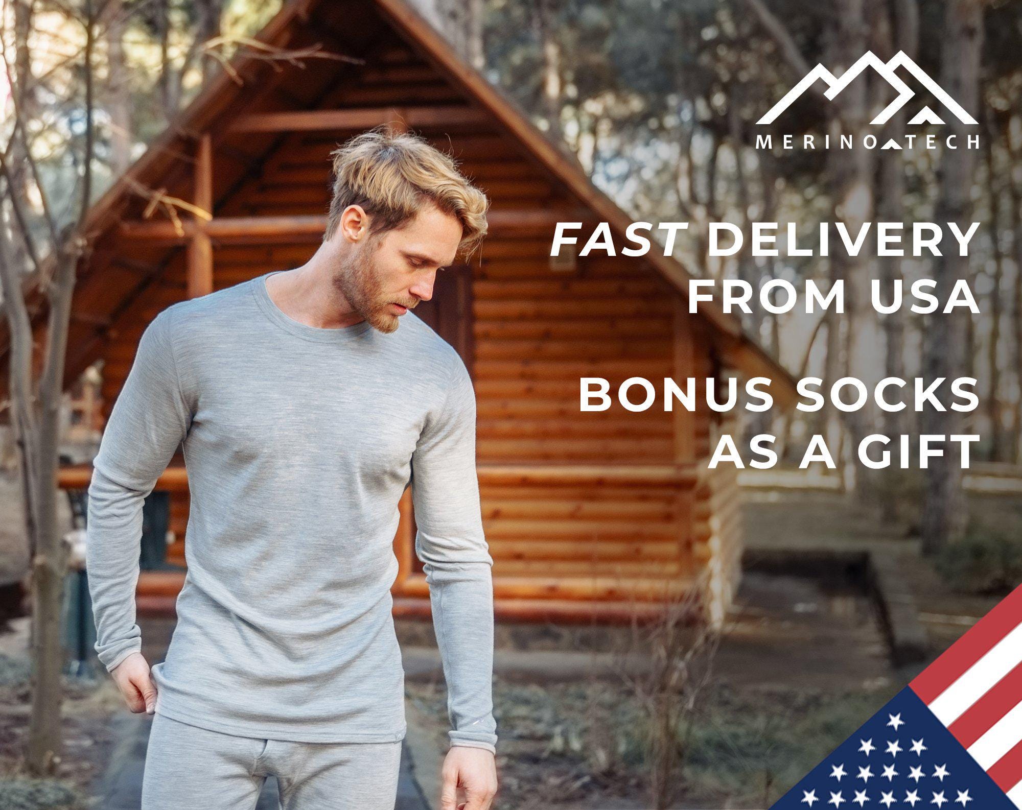 Merino wool, midweight 250 GSM (grams per square meter) - 100% superfine Merino fabric provides all day comfort and no itch. The natural wicking and odor-resistant properties of Merino long sleeve top allow it to absorb moisture better than any other fabric, keeping you dry and fresh.