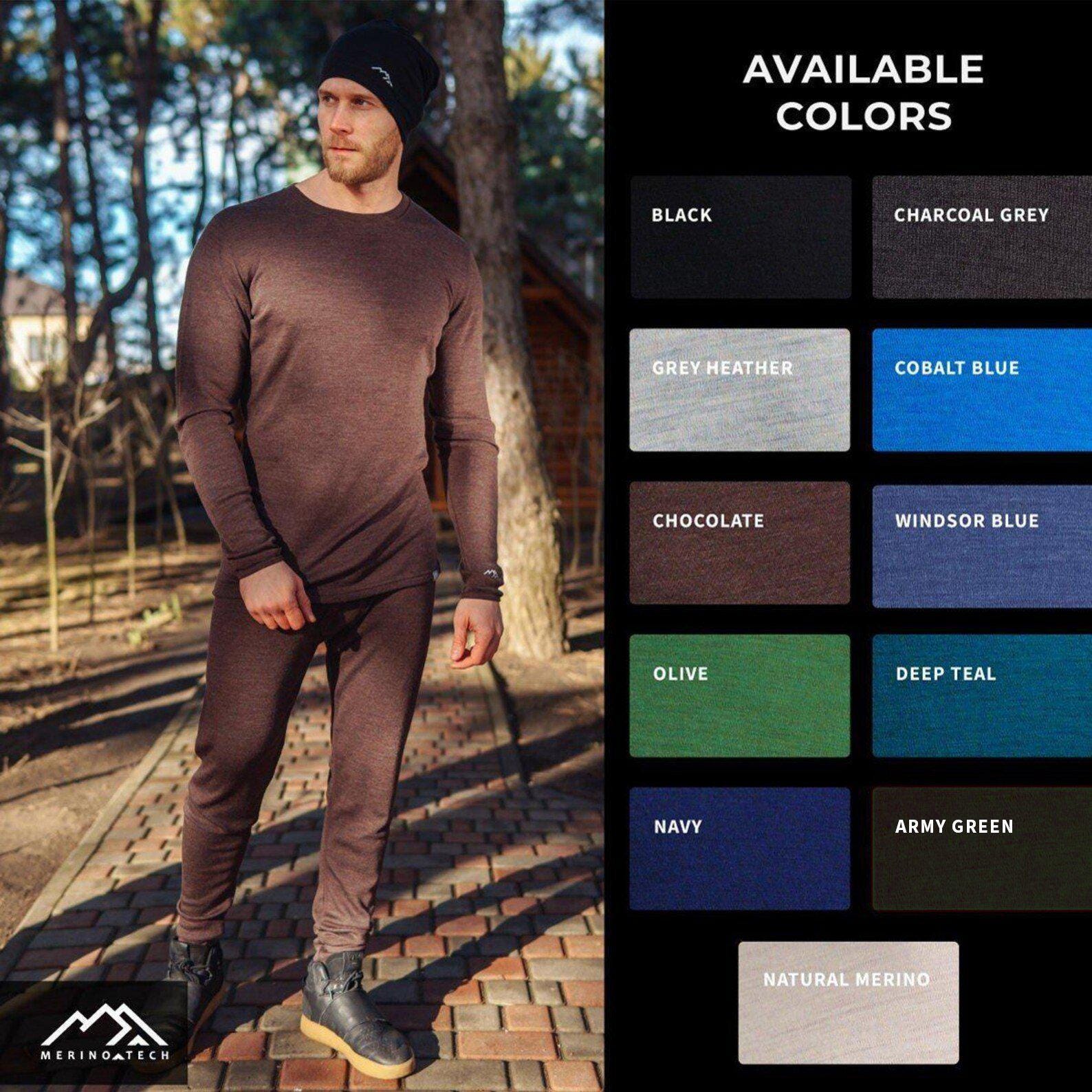 Merino wool, Midweight 250 250 g/m² (grams per square meter) - 100% superfine Merino fabric provides all day comfort and no itch. The natural wicking and odor-resistant properties of Merino organic leggings for men allow it to absorb moisture better than any other fabric, keeping you dry and fresh.