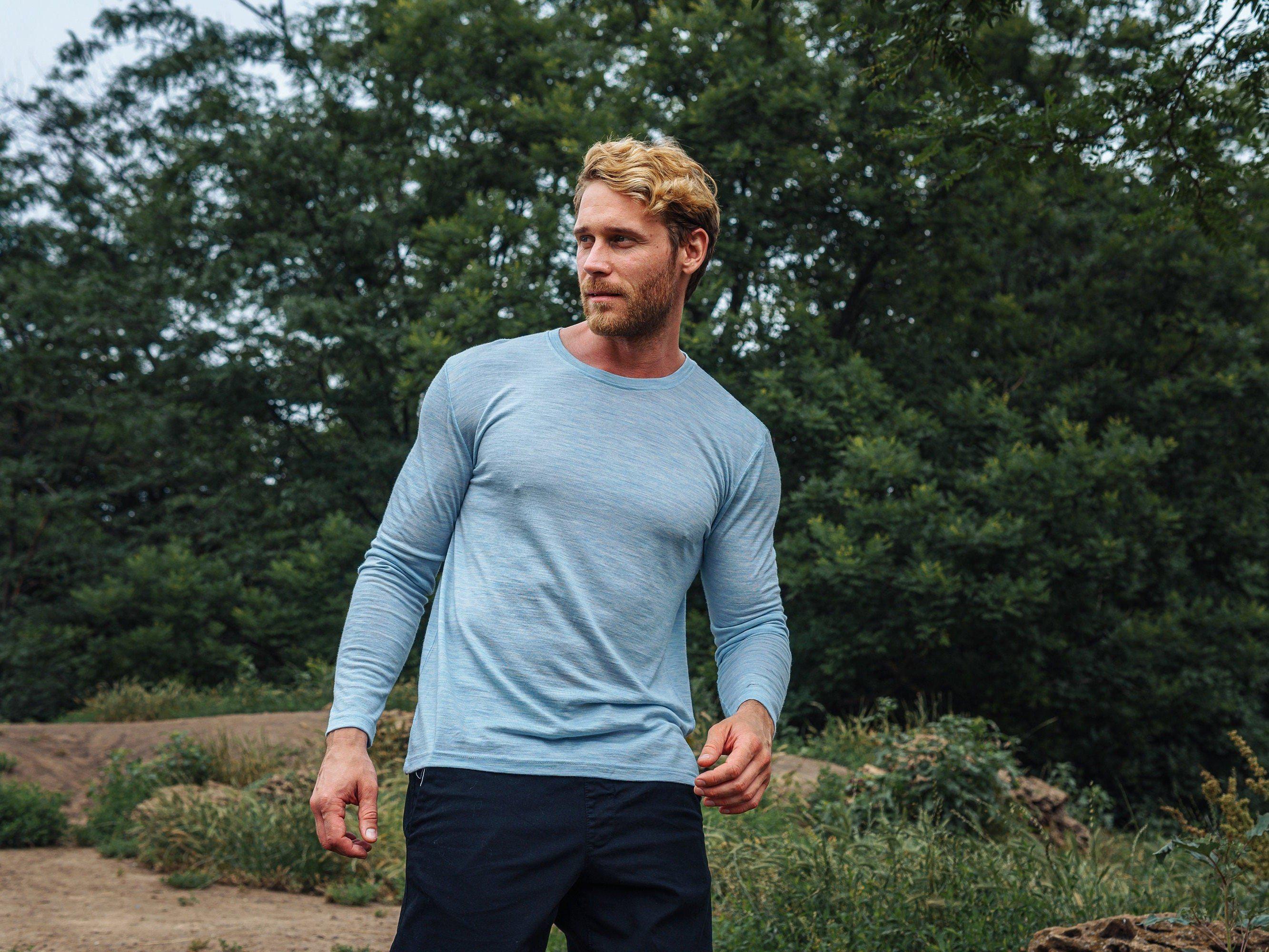 The fabric this tee is made of - 100% Merino wool - is quite thin and yet surprisingly warm, which both balances your body temperature and facilitates freedom of movement. Along with its great moisture-wicking properties merino wool thermal base layers keep you warm while wicking away sweat. This is why this long sleeve shirt is a good option for anyone who does all sorts of winter sports in frigid temperatures.