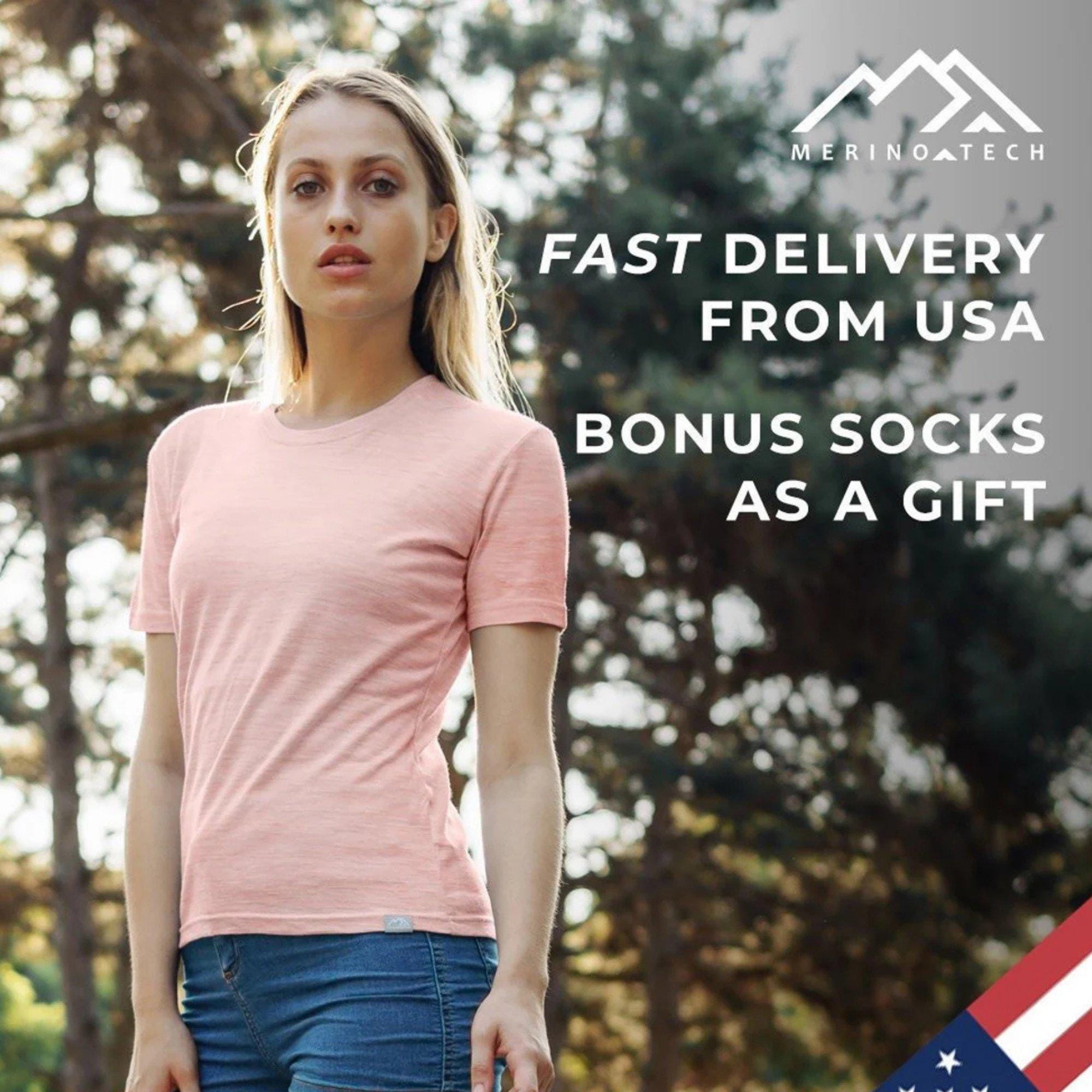 Package includes Lightweight Merino Wool T Shirt Women 165 g/mยฒ + Merino wool hiking socks.