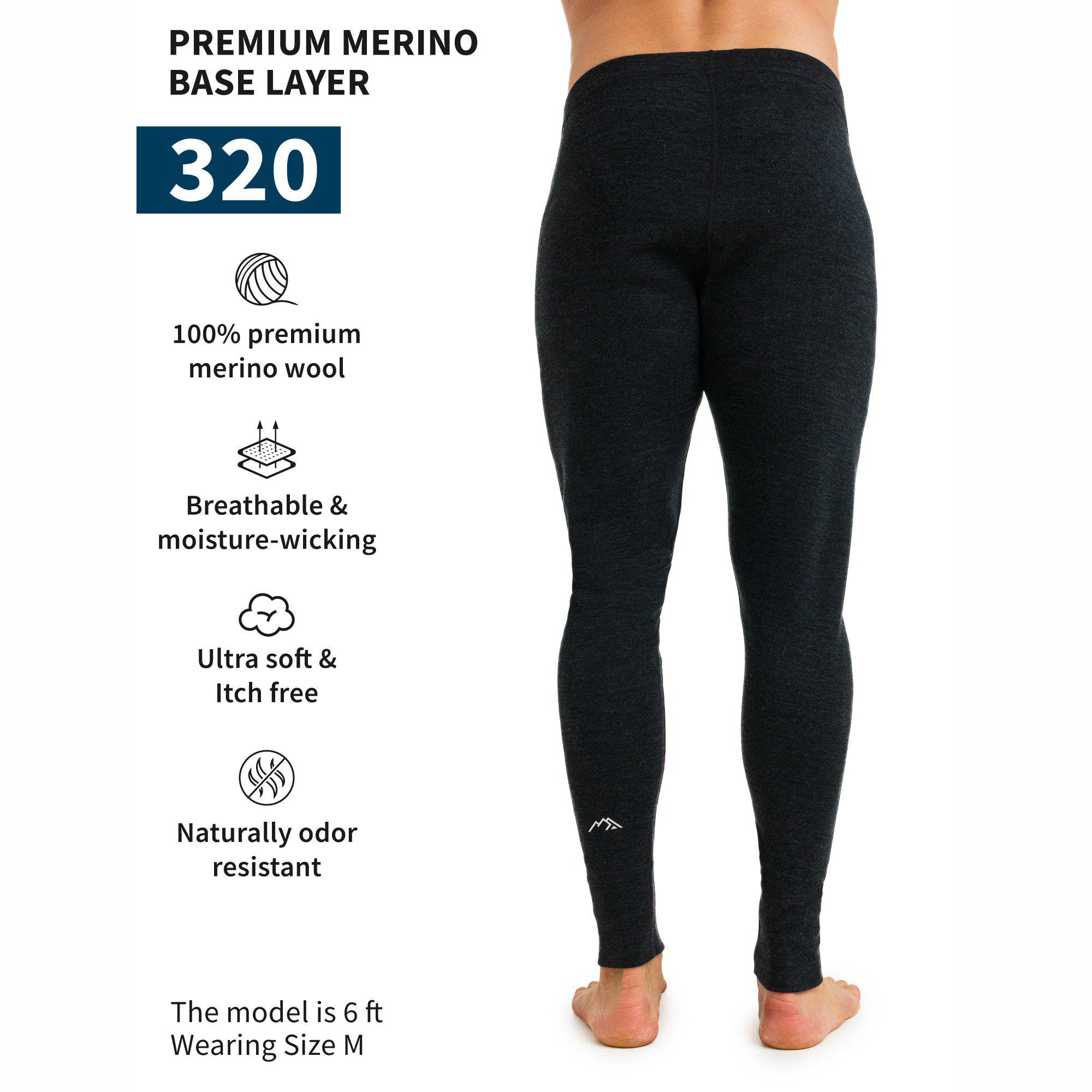 Merino wool, heavyweight 320 GSM (grams per square meter) - 100% superfine Merino fabric provides all day comfort and no itch. The natural wicking and odor-resistant properties of Merino organic leggings for men allow it to absorb moisture better than any other fabric, keeping you dry and fresh.