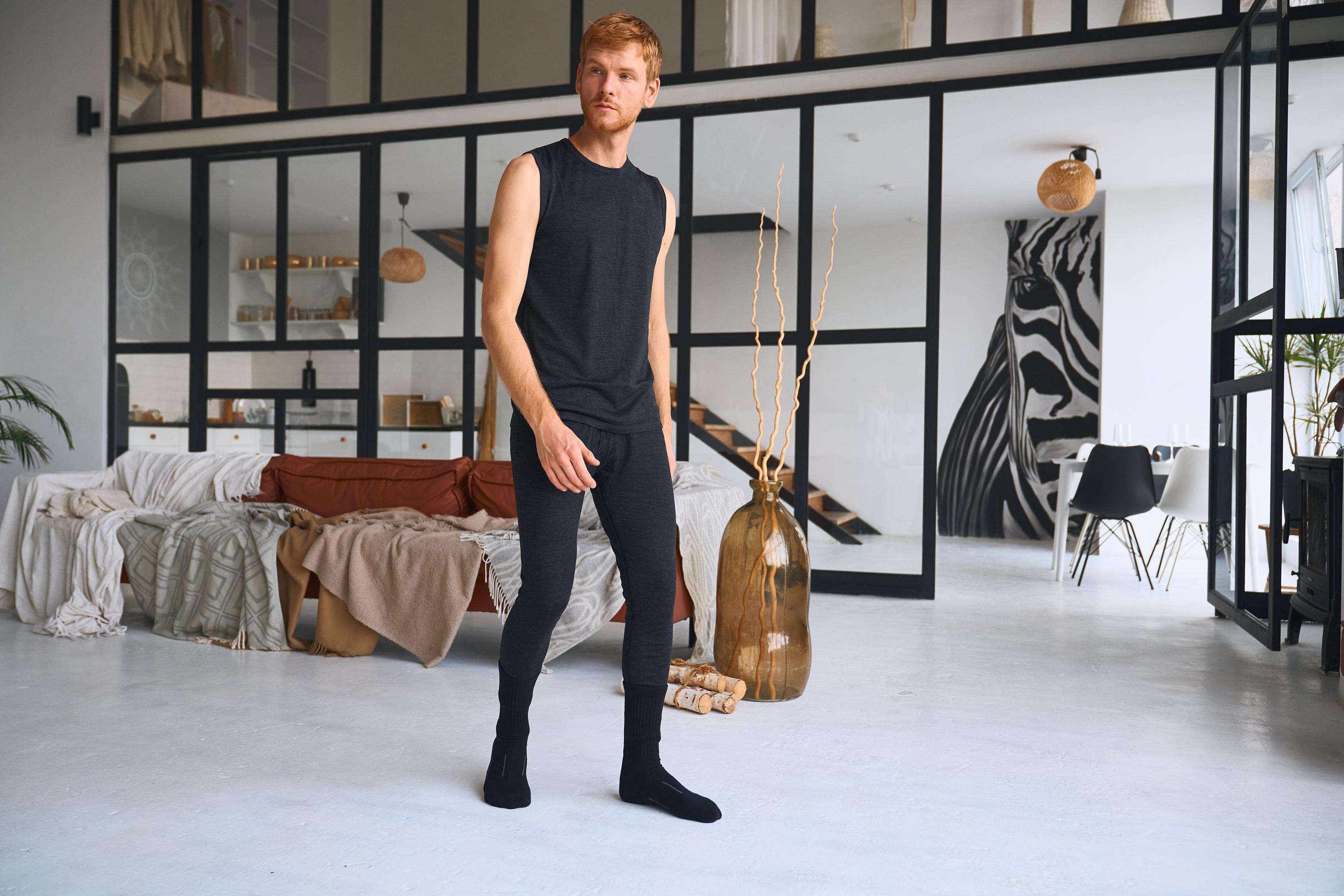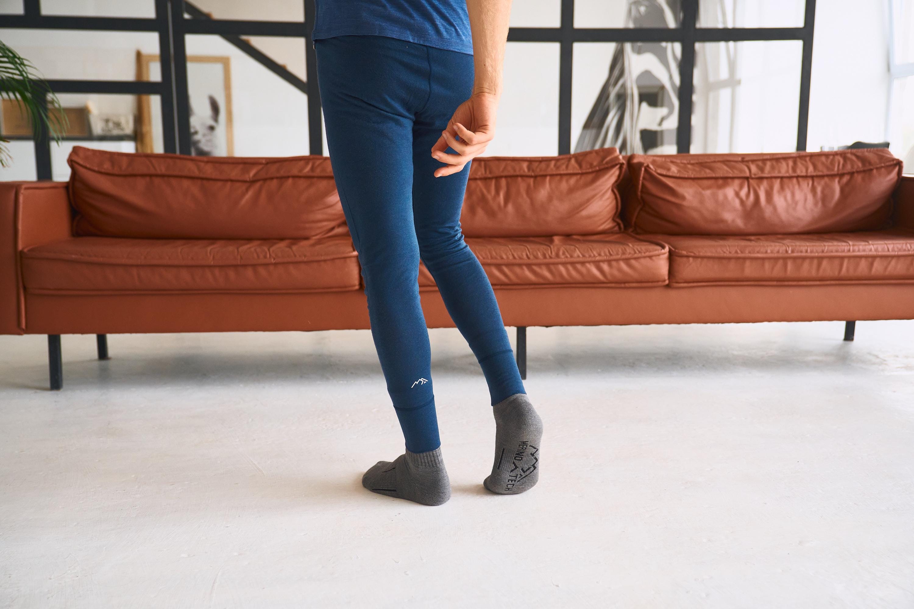 Merino wool, Midweight 165 GSM (grams per square meter) - 100% superfine Merino fabric provides all day comfort and no itch. The natural wicking and odor-resistant properties of Merino organic leggings for men allow it to absorb moisture better than any other fabric, keeping you dry and fresh.