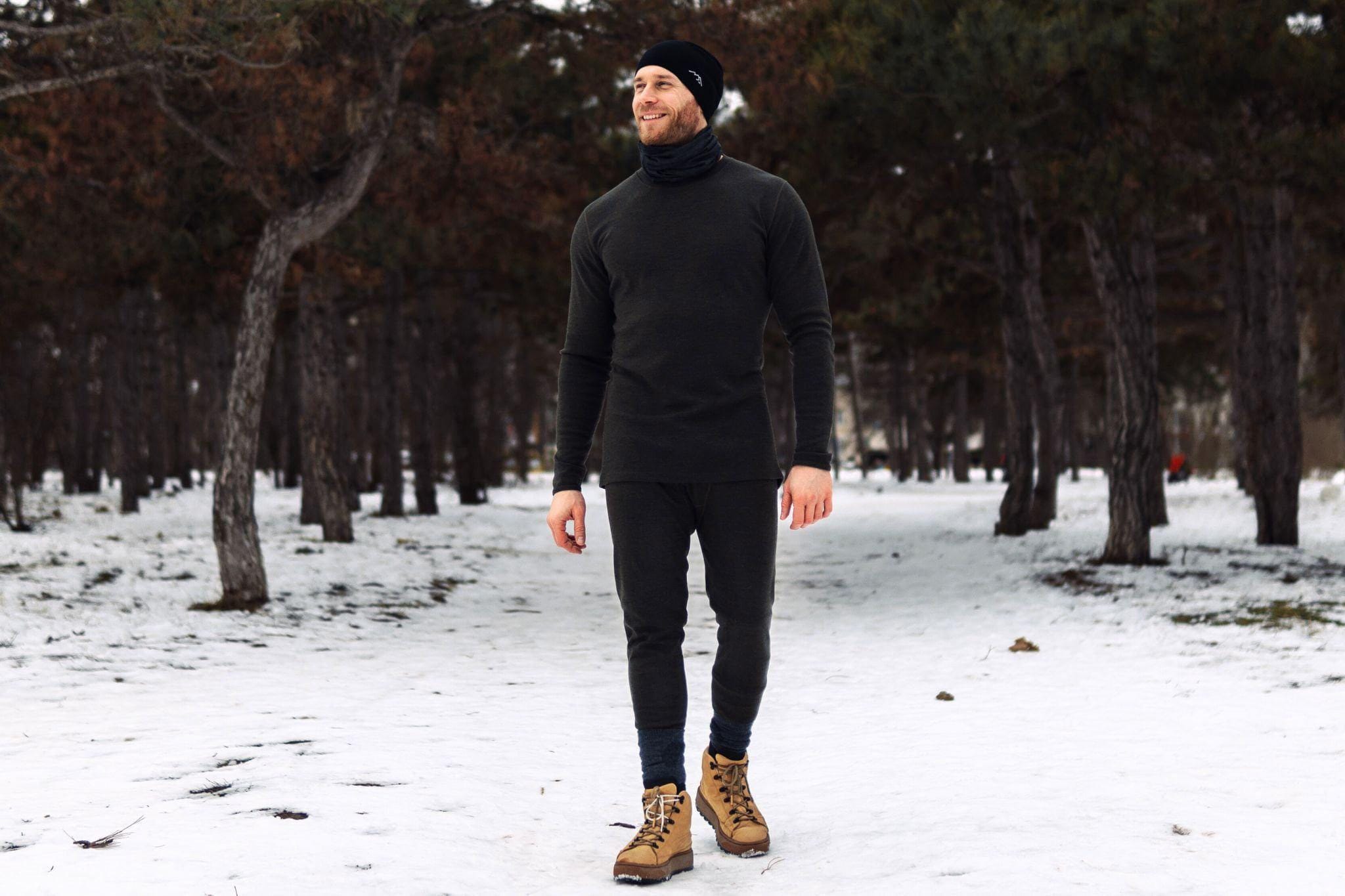 The fabric this tee is made of - 100% Merino wool - is quite thin and yet surprisingly warm, which both balances your body temperature and facilitates freedom of movement. Along with its great moisture-wicking properties merino wool thermal base layers keep you warm while wicking away sweat. This is why this base layer set is a good option for anyone who does all sorts of winter sports in frigid temperatures.
