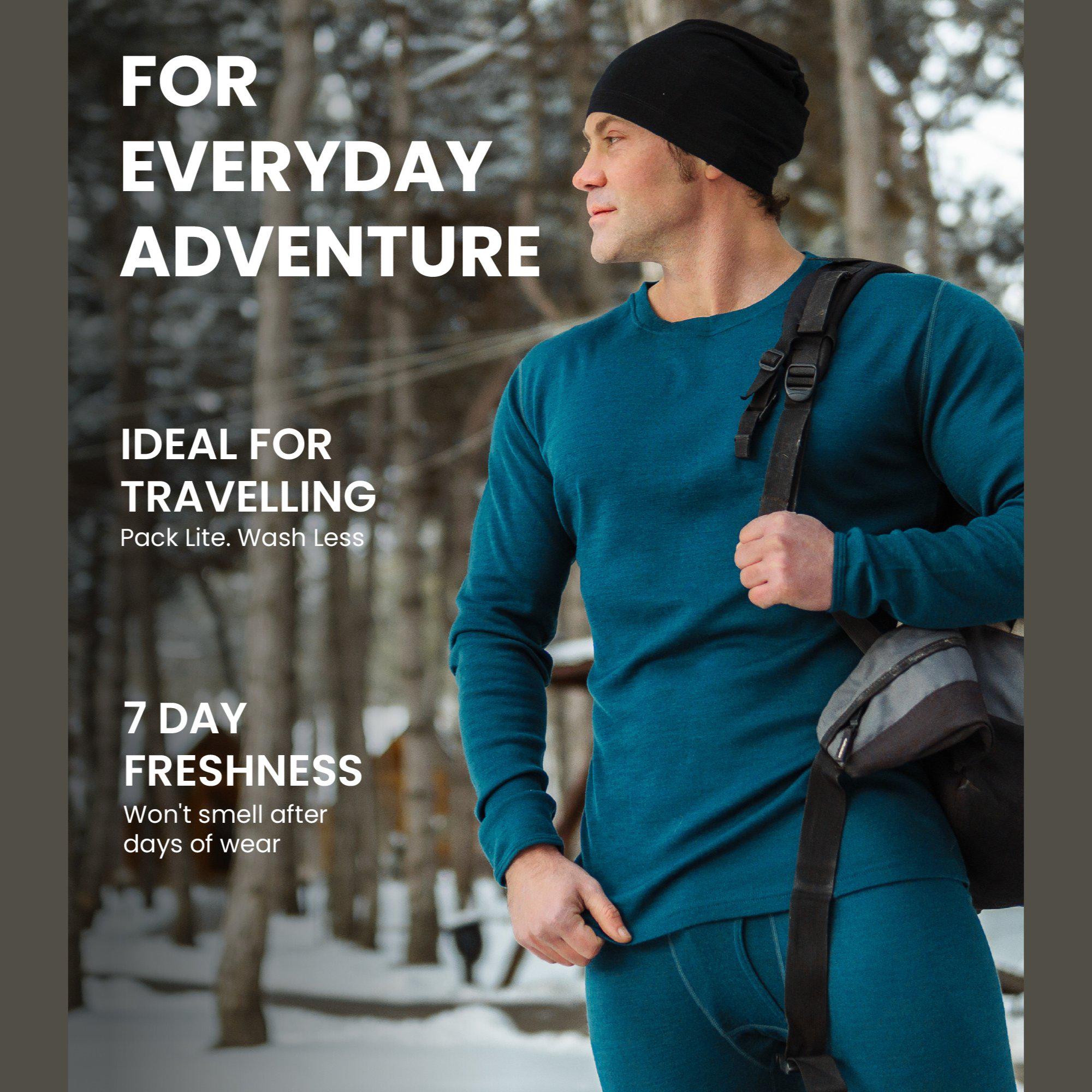 Stay warm and stylish with this premium thermal wear merino thermals set, the perfect winter sportswear and winter running gear for men. Crafted from 100% merino wool, this thermal underwear offers exceptional warmth, breathability, and moisture-wicking properties, making it ideal for outdoor adventures, gym sessions, or lounging at home. Designed for comfort and versatility, this merino wool thermal set features a snug-fitting merino shirt and thermal leggings that provide a shapely silhouette while allowing full freedom of movement.