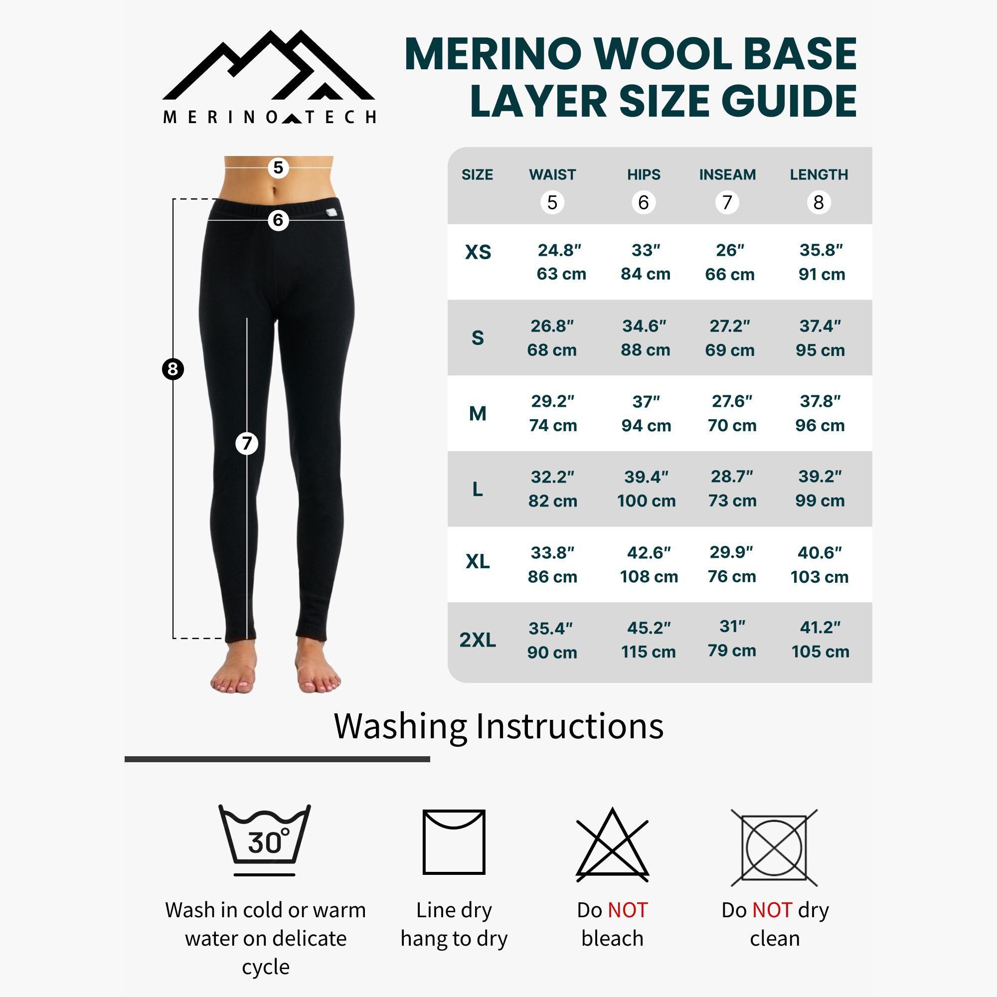 Merino wool, midweight 320 GSM (grams per square meter) - 100% superfine Merino fabric provides all day comfort and no itch. The natural wicking and odor-resistant properties of Merino organic leggings for women allow it to absorb moisture better than any other fabric, keeping you dry and fresh.