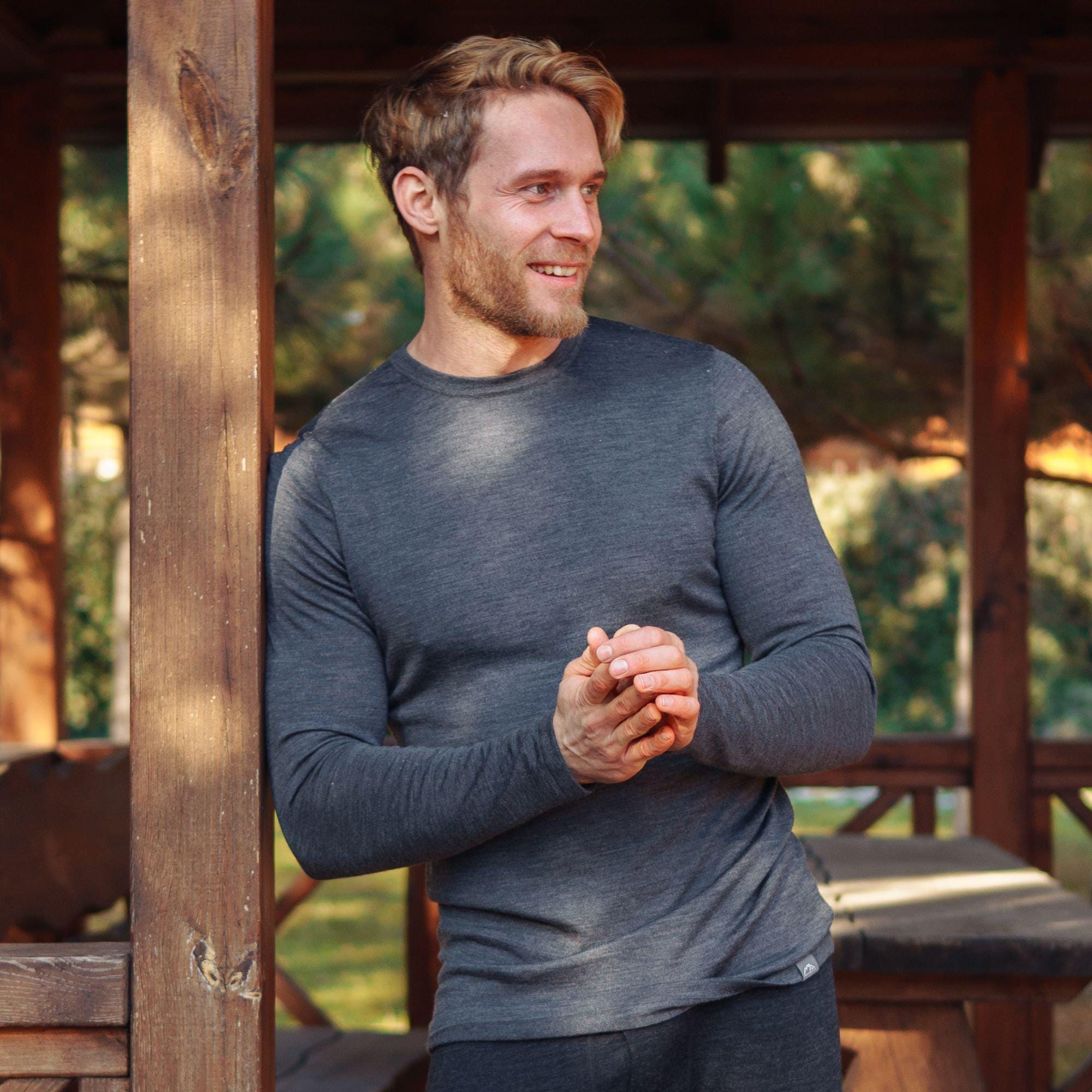 Men's Long Sleeve T-Shirt & Wool Socks | Organic 100% Merino Wool Midweight Base Layer Sweater | Thermal men's activewear for Winter Outdoor