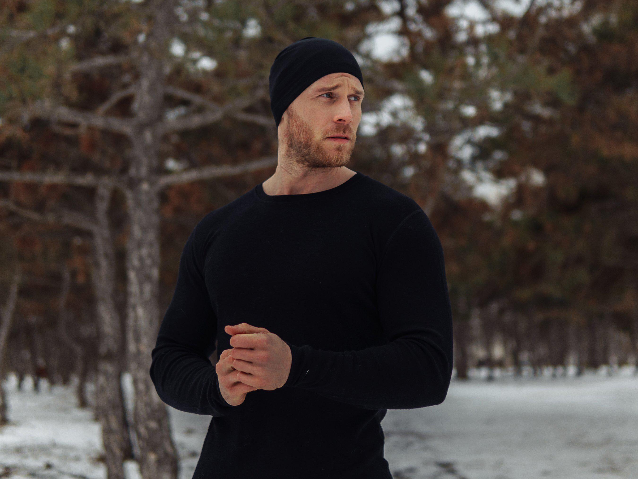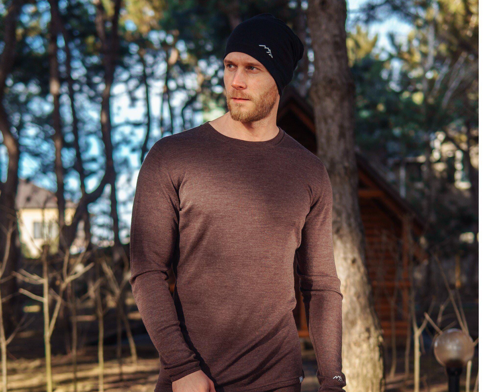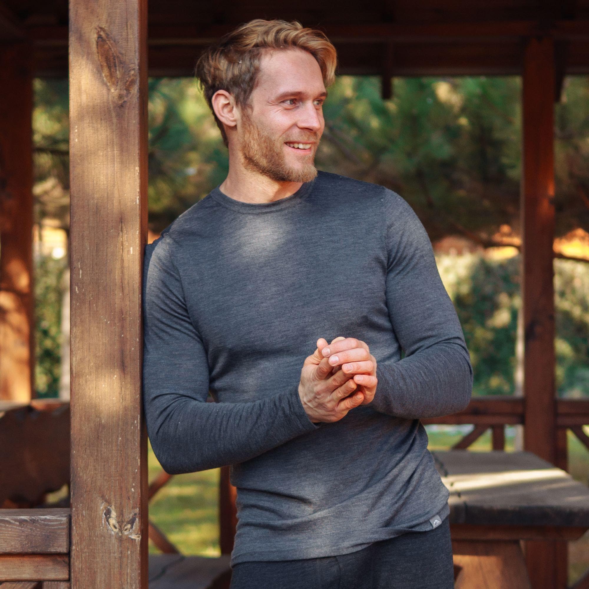 Merino wool top thermal long sleeve base layer gymwear, mens running gear, gym outfit, hiking clothes