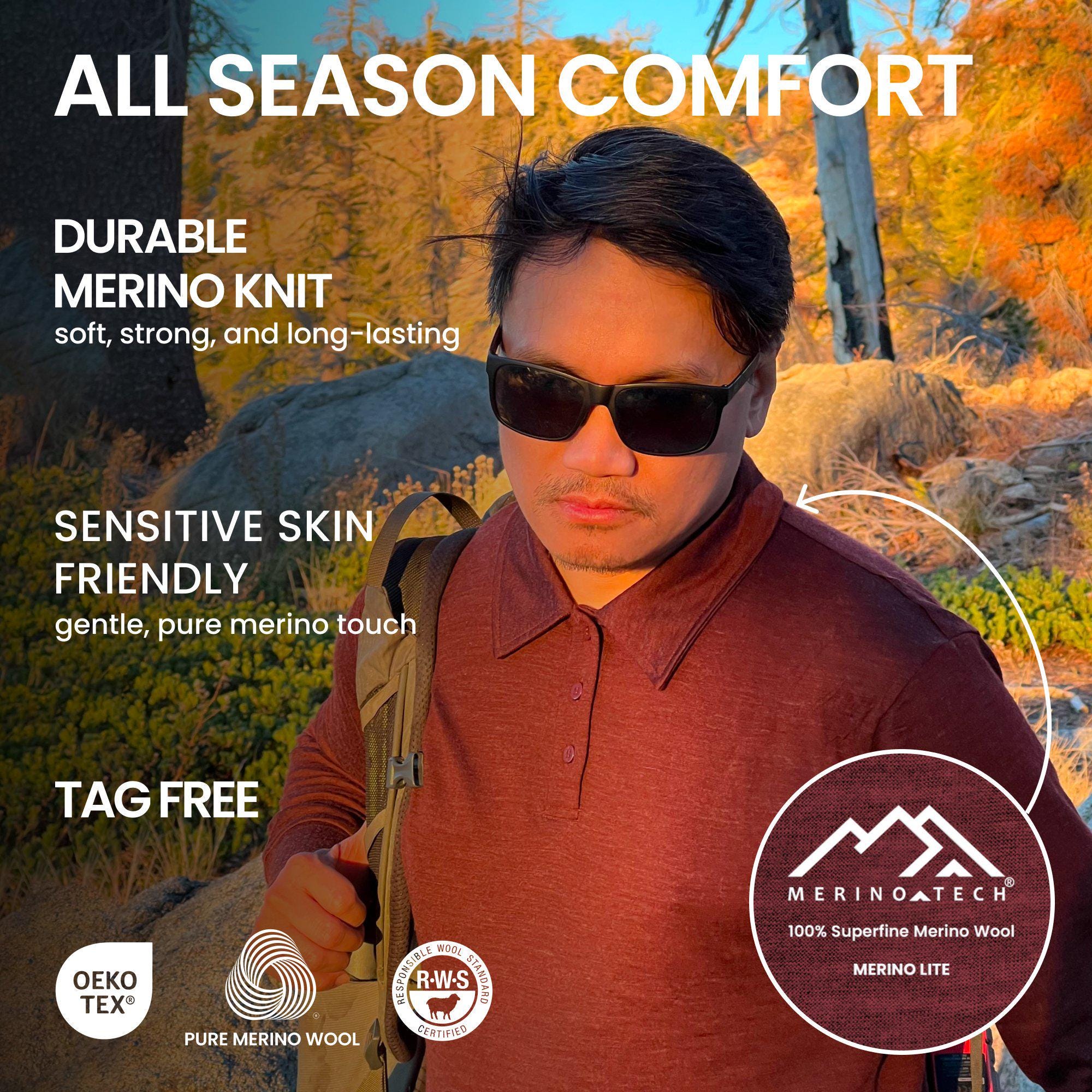 Package includes Merino.tech merino wool polo shirts for men Lightweight 165 g/mΒ².