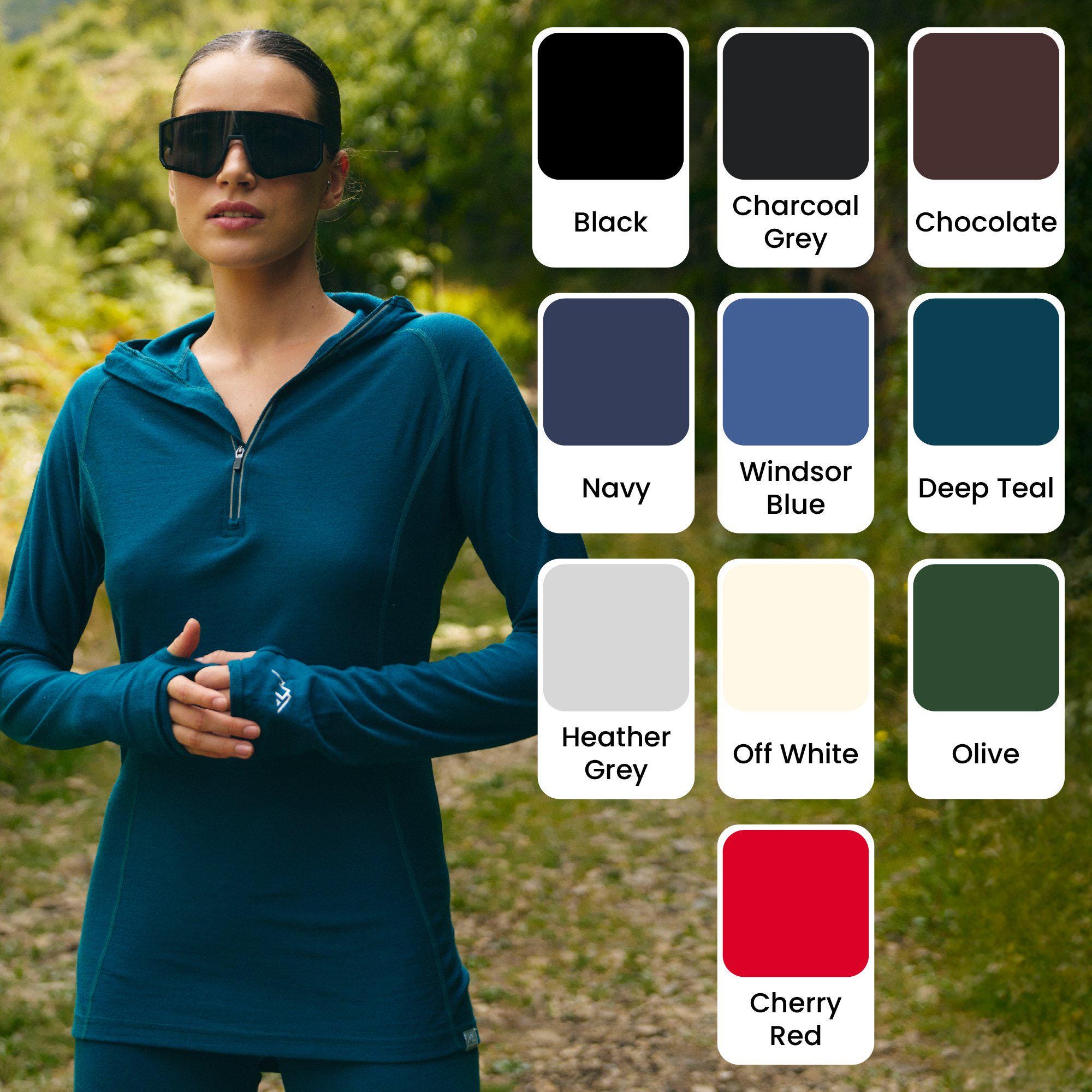MOISTURE WICKING & ODOR RESISTANT – Merino Wool Quarter zip Women's Hoodie natural wicking and odor-resistant properties allows it to absorb moisture better than any other fabric, keeping you dry and fresh. Perfect for running, hiking, hunting, or hitting the gym!