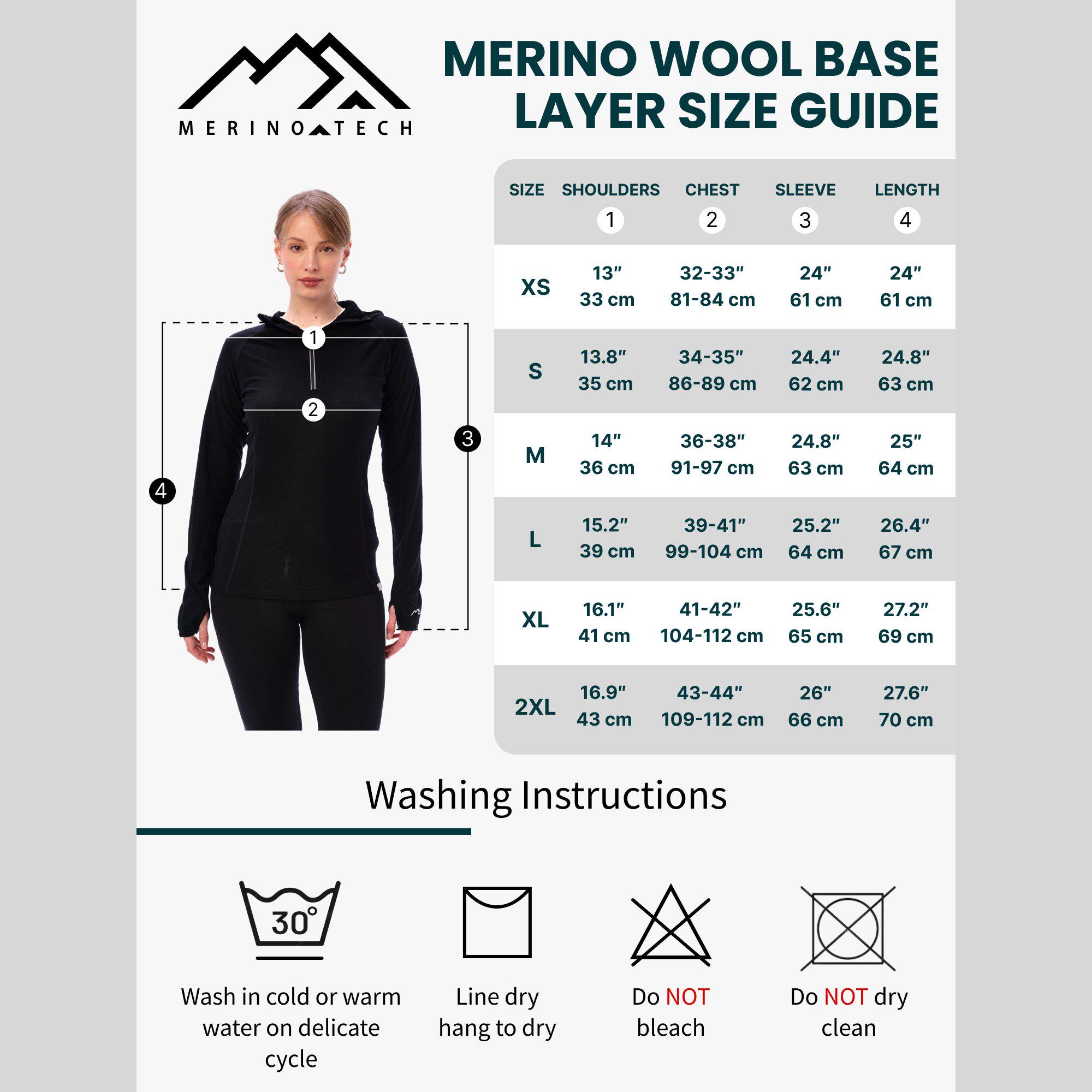 EASY CARE – Washer/dryer safe. For longer lasting wear, hand wash and lay flat to air dry. Women's Merino Wool Hoodie naturally regulates body temperature to keep you comfortable all year round.