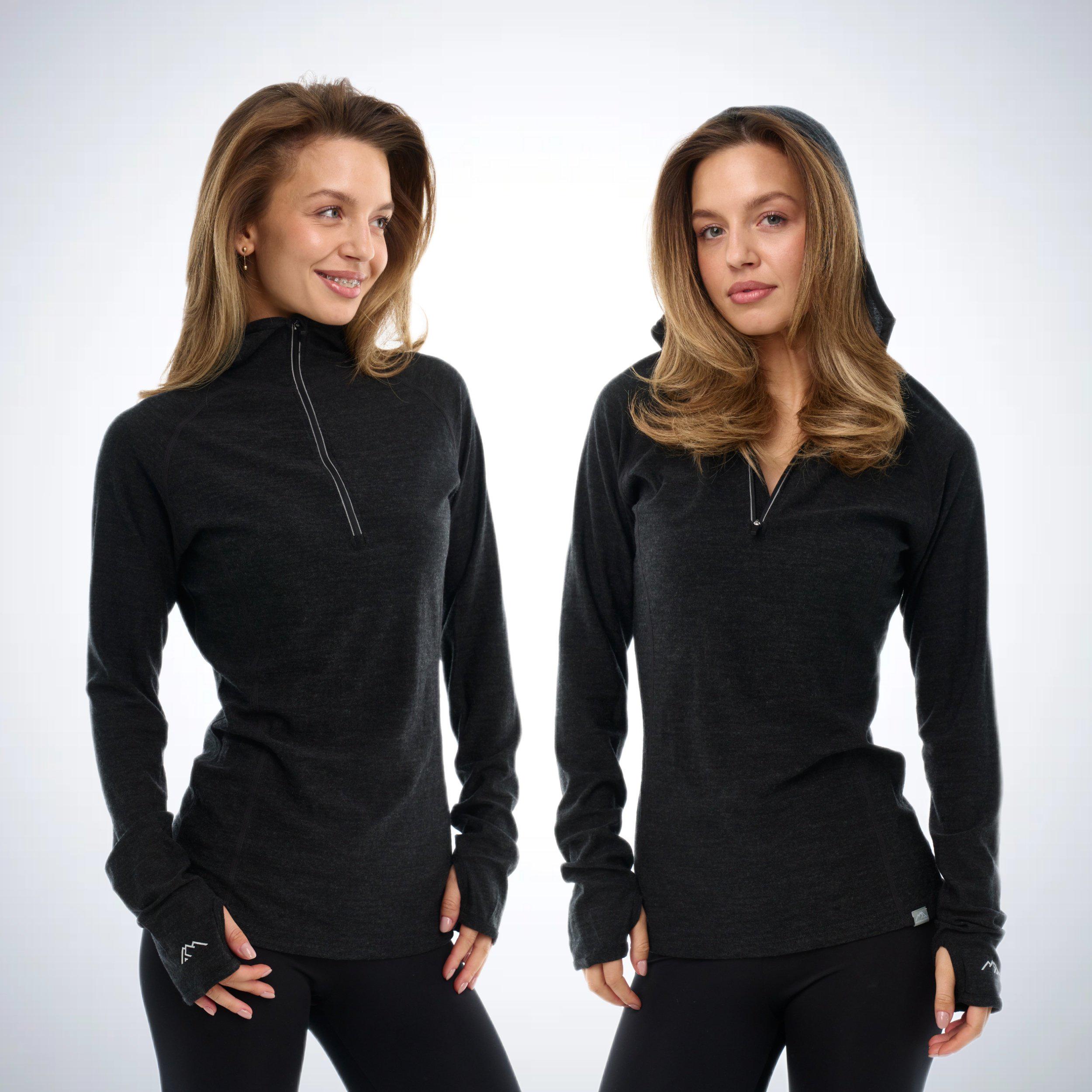 Quarter zip hoodie merino wool thermal lightweight hoodie, ladies running gear, half zip sweatshirt