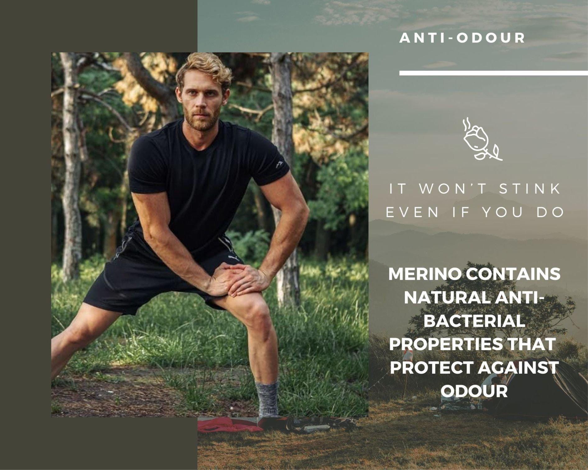 Merino wool, Lightweight 165 GSM (grams per square meter) - 100% superfine Merino fabric provides all day comfort and no itch. The natural wicking and odor-resistant properties of Merino menβs tee allow it to absorb moisture better than any other fabric, keeping you dry and fresh.
