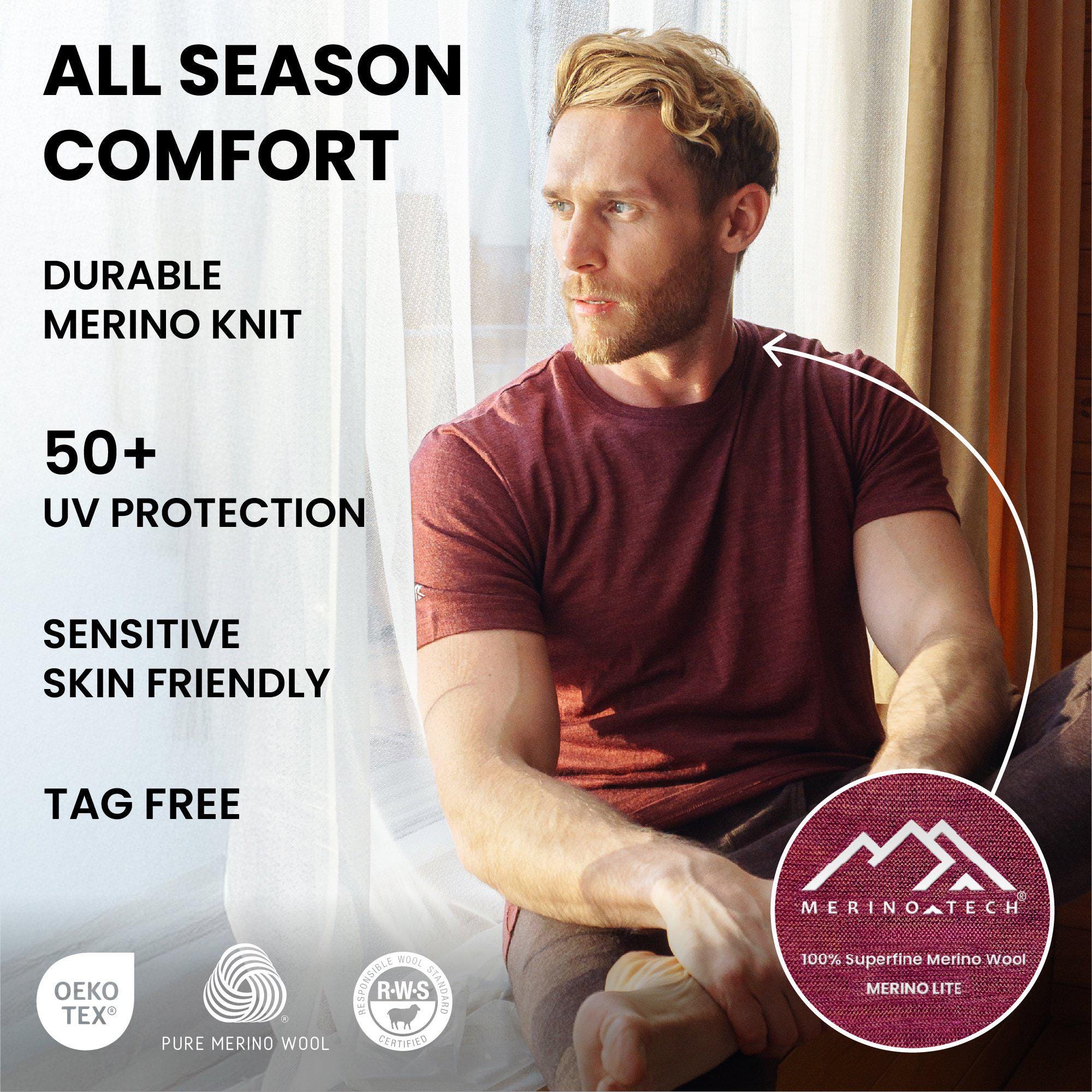 Men's T-Shirt - Merino Wool Shirt for Men, Organic Merino Tee Short Sleeve, Comfy lightweight shirts, Basic Summer Top, Gift for him