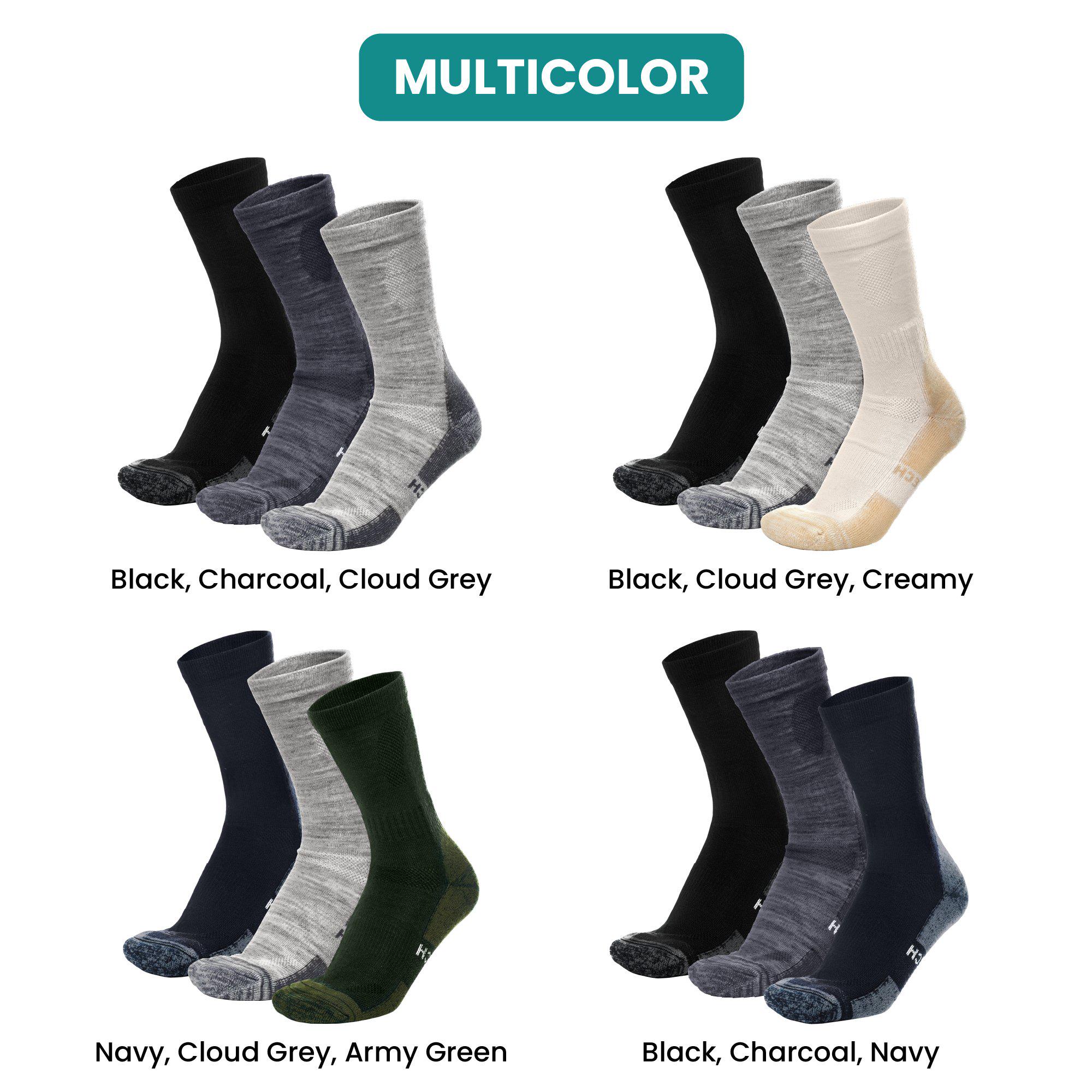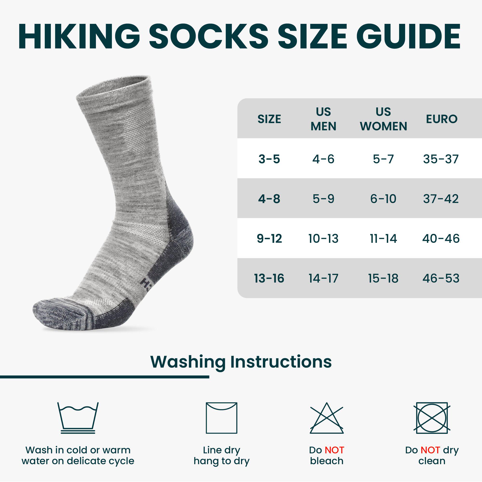 85% Merino wool, 13% Stretch Nylon, 2% Spandex - for best hiking experience. This exceptional composition makes these womens and mens wool socks perfect for outdoor activities as well as everyday wear in cold weather.
