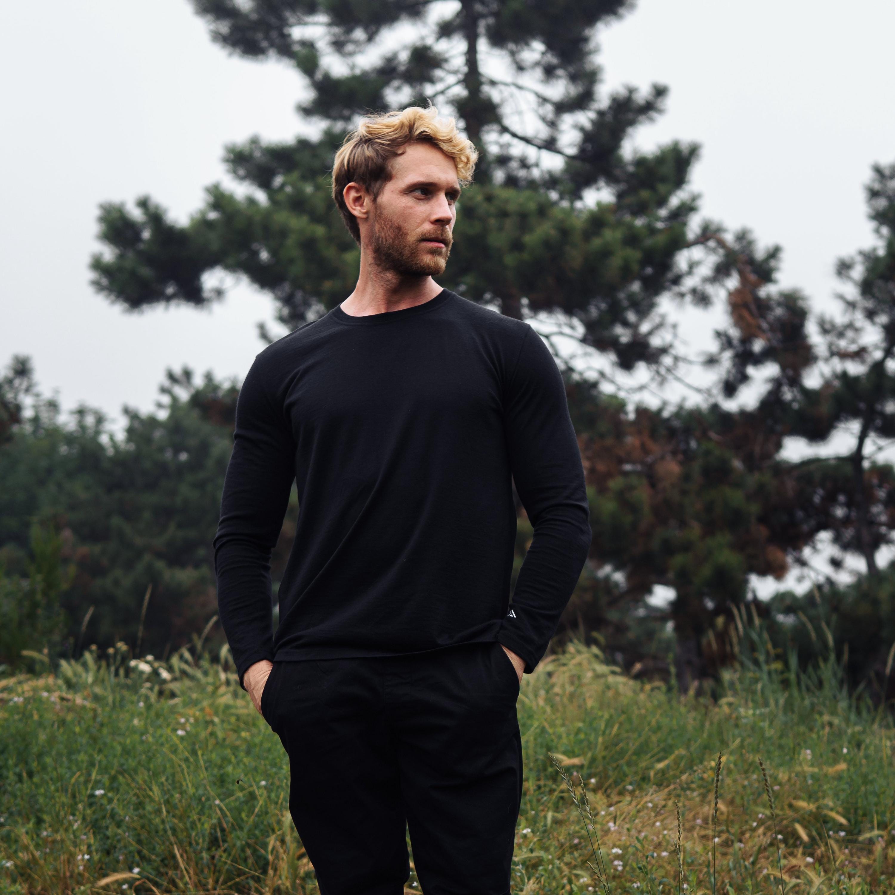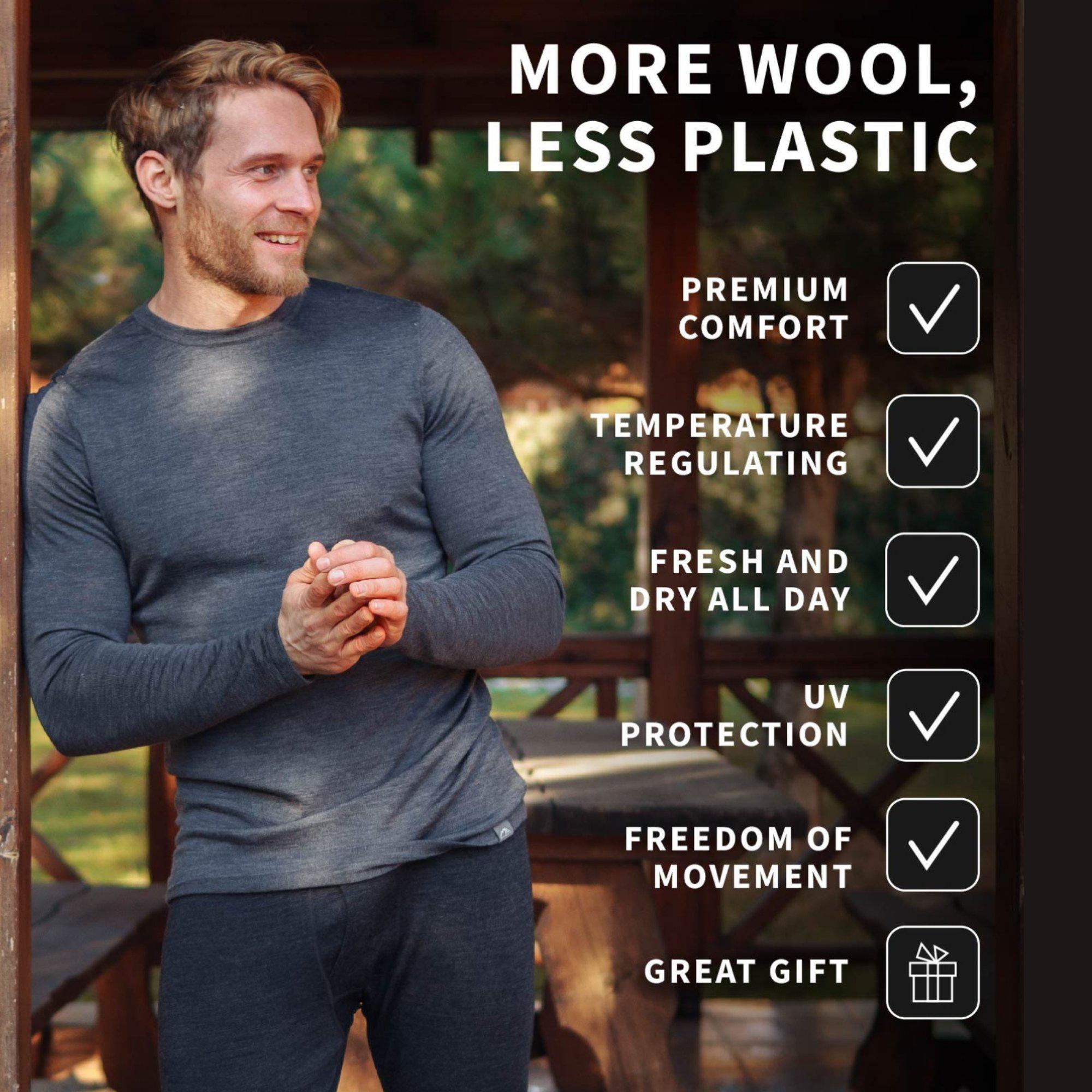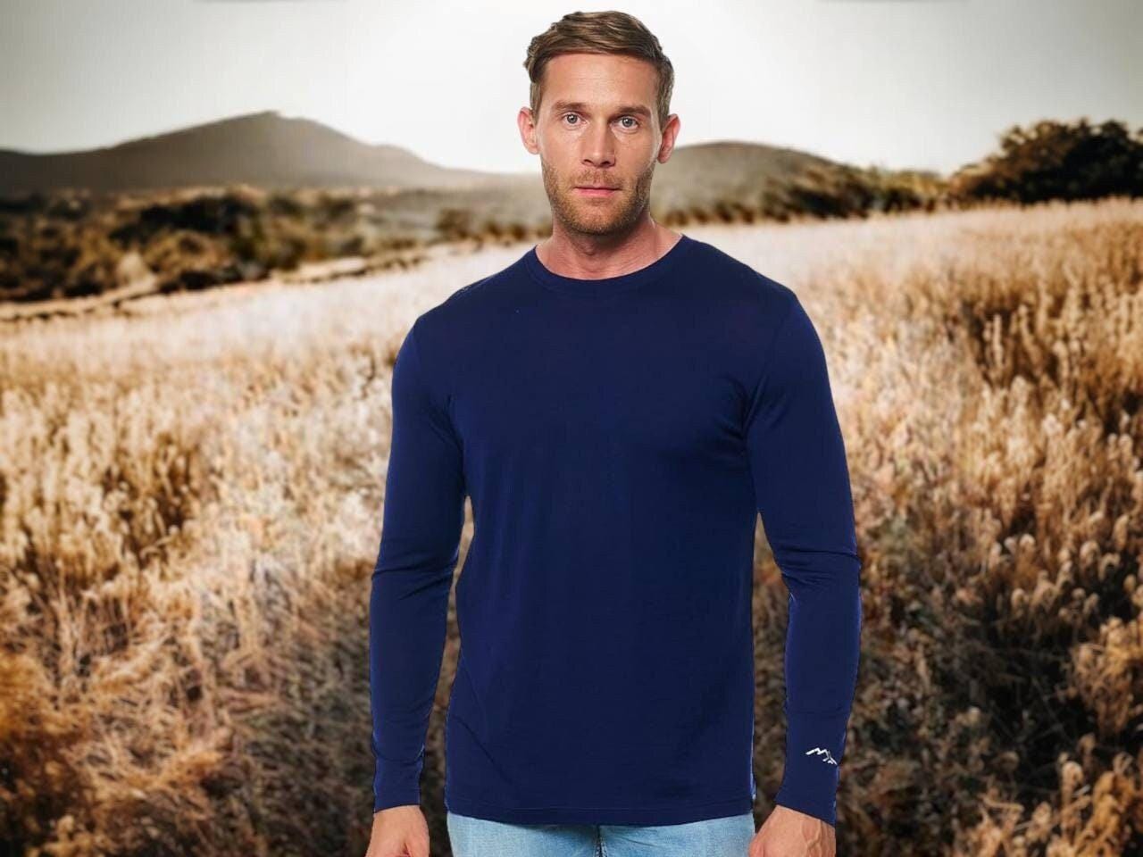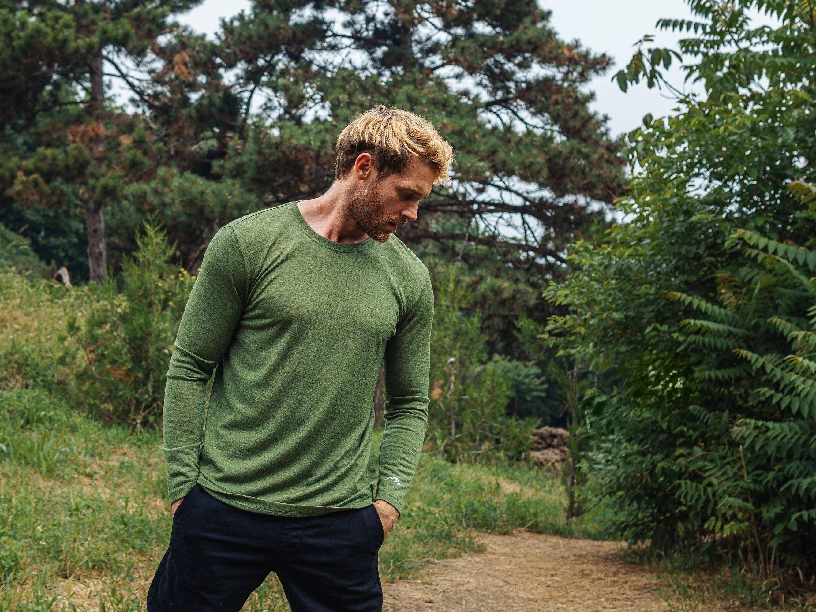 Merino Wool Long Sleeve Shirt for Men, Lightweight Crewneck Sweatshirt, Outdoor Thermal Sweater, Men's Pullover, premium Merino 165 gsm
