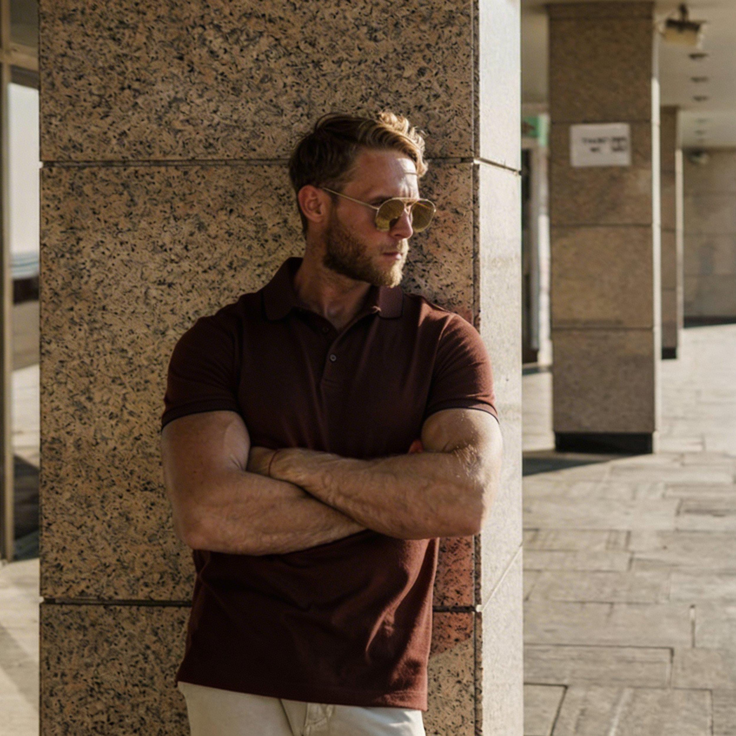 Discover the perfect blend of style and comfort with our Merino Wool Polo, featured here in a natural, earthy tone that pairs effortlessly with any casual outfit. This sophisticated short sleeve shirt showcases fine craftsmanship and sustainable menswear design, making it a unique addition to your wardrobe.