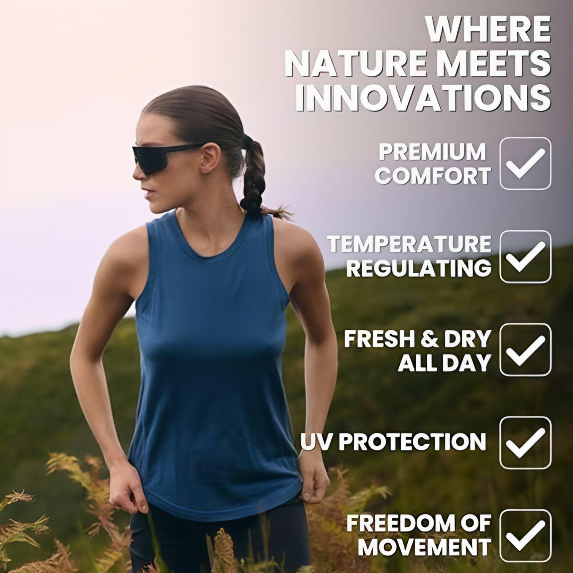 Experience the comfort and versatility of our merino wool Womens Tank Top, as seen in the sleek, natural-toned image featuring a classic scoop neck and tailored fit. This organic Merino wool tank top offers a breathable, moisture-wicking base layer designed to keep you comfortable year-round while supporting environmentally friendly clothing choices.