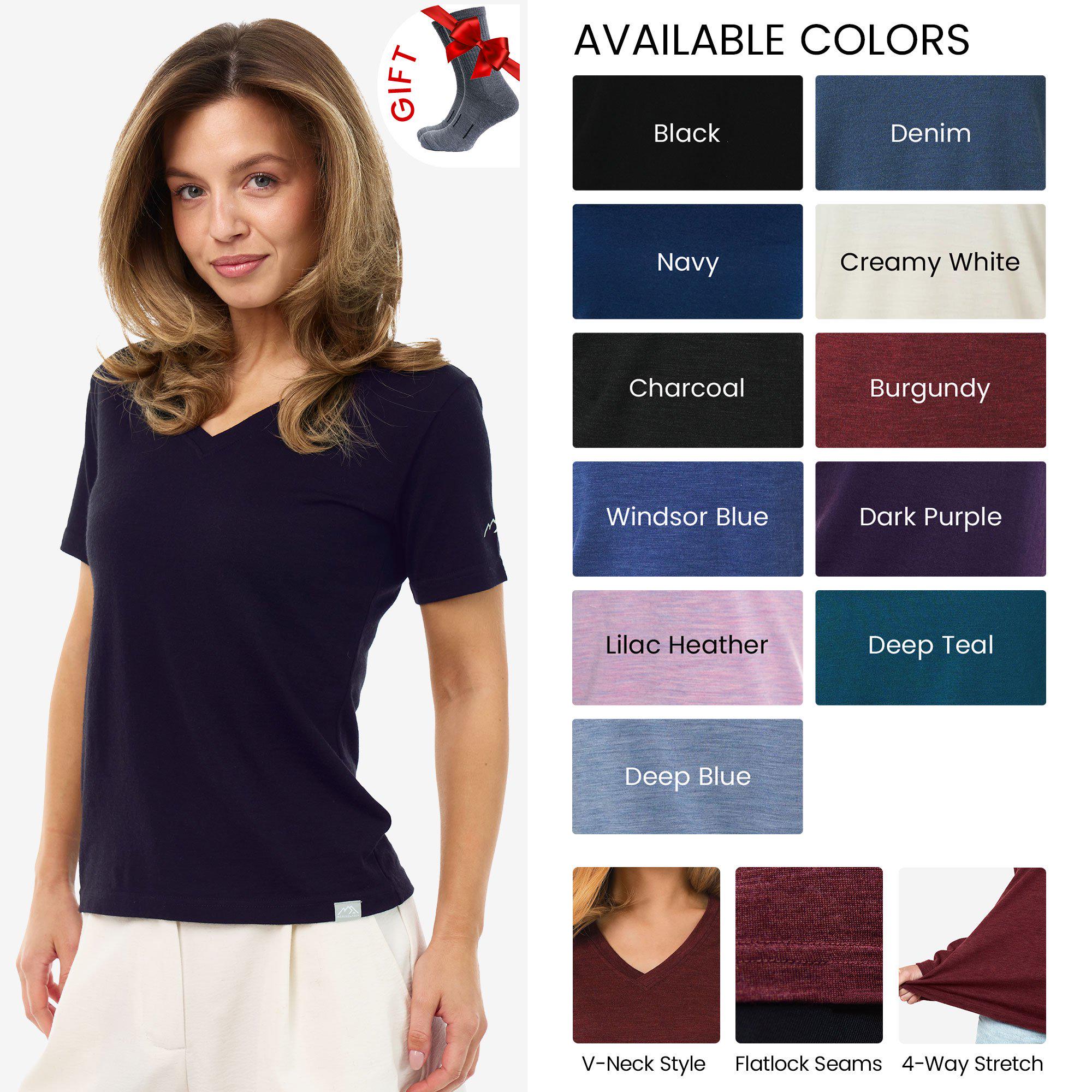 Merino Wool T-Shirt Women, female V-neck tshirt ladies active wear women base layer merino hiking clothes for women, merino wool tshirt