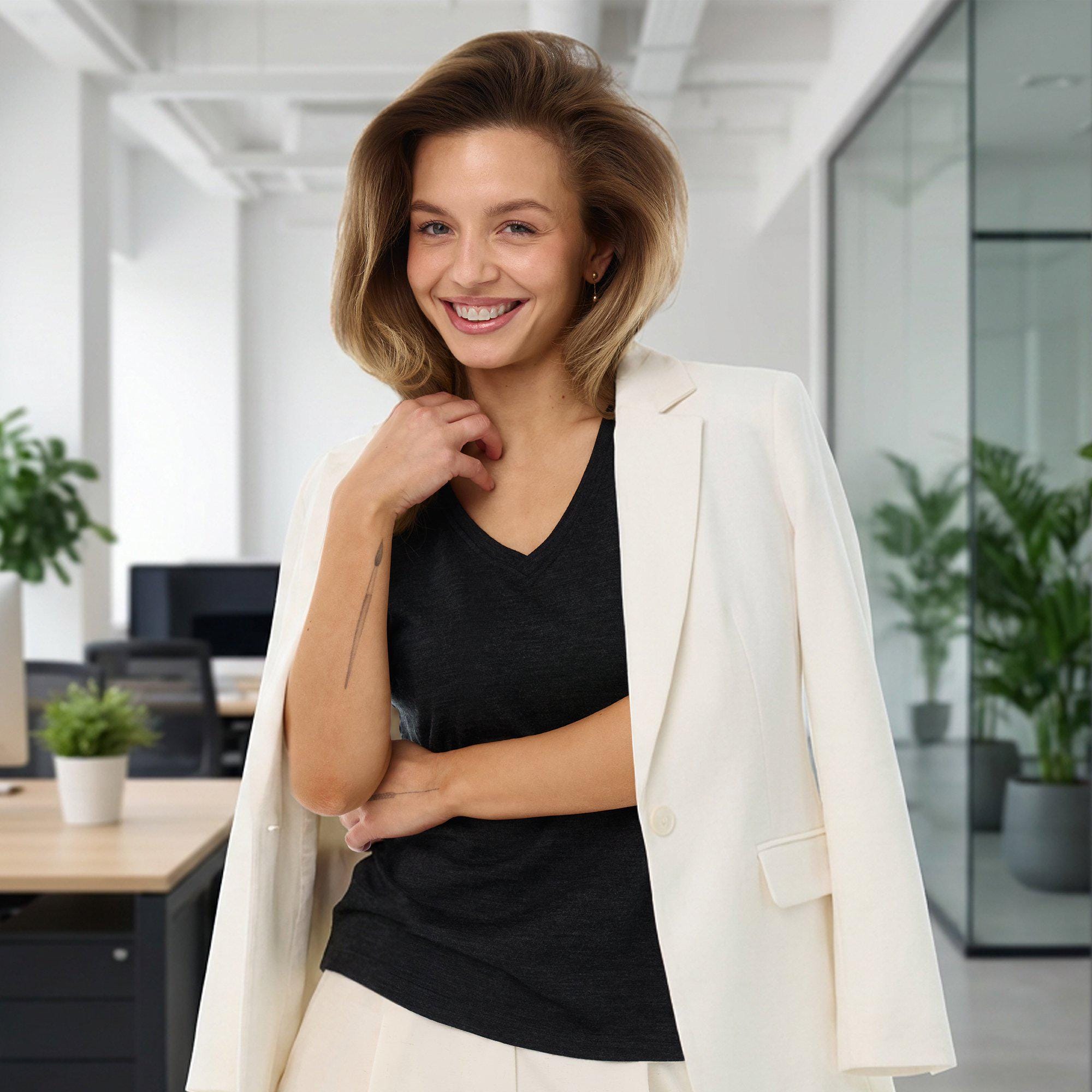 Experience the perfect blend of comfort and performance with our Merino Wool T-Shirt women’s base layer, designed with a flattering female V-neck and visible natural texture that promises breathability and style. This versatile merino wool t-shirt, showcased in soft earth tones in the image, offers superior moisture-wicking and temperature regulation for hiking, running, or gym wear.