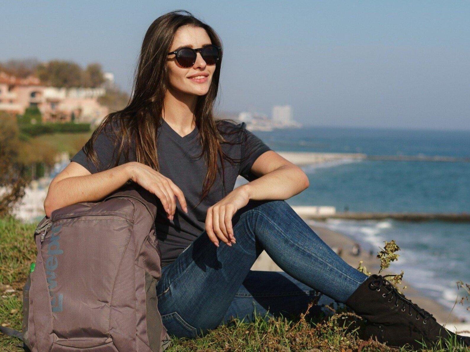 Merino wool, Lightweight 165 GSM (grams per square meter) - 100% superfine Merino fabric provides all day comfort and no itch. The natural wicking and odor-resistant properties of Merino women’s tee allow it to absorb moisture better than any other fabric, keeping you dry and fresh.