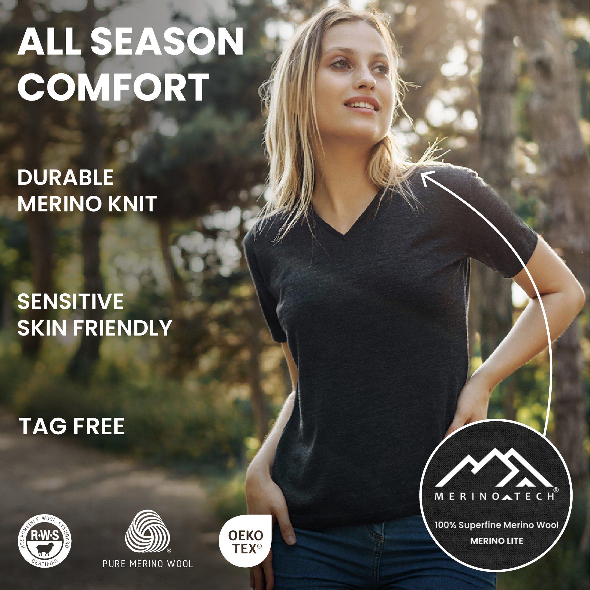 Hiking clothes women base layer Merino Wool T-Shirt, female V-neck t-shirt ladies, merino wool tshirt, running top women, ladies gym wear