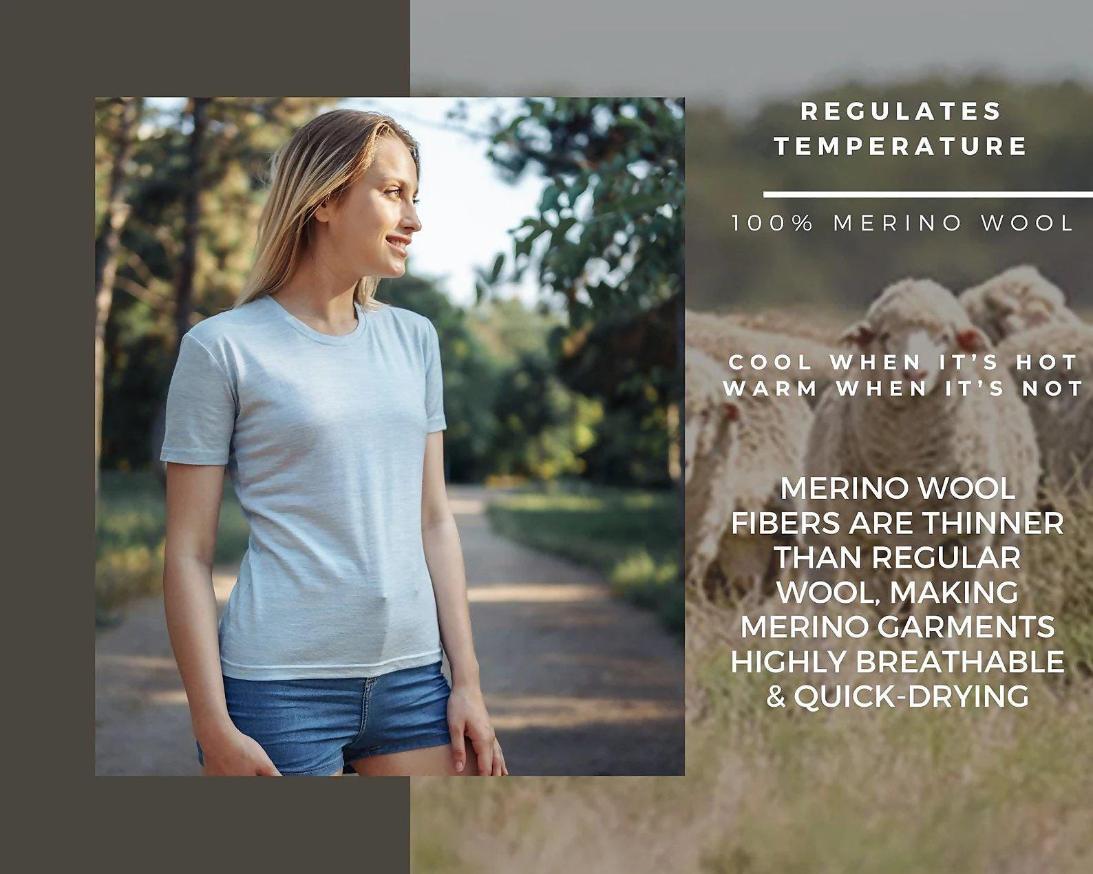 Merino wool, Lightweight 165 GSM (grams per square meter) - 100% superfine Merino fabric provides all day comfort and no itch. The natural wicking and odor-resistant properties of Merino women’s tee allow it to absorb moisture better than any other fabric, keeping you dry and fresh.