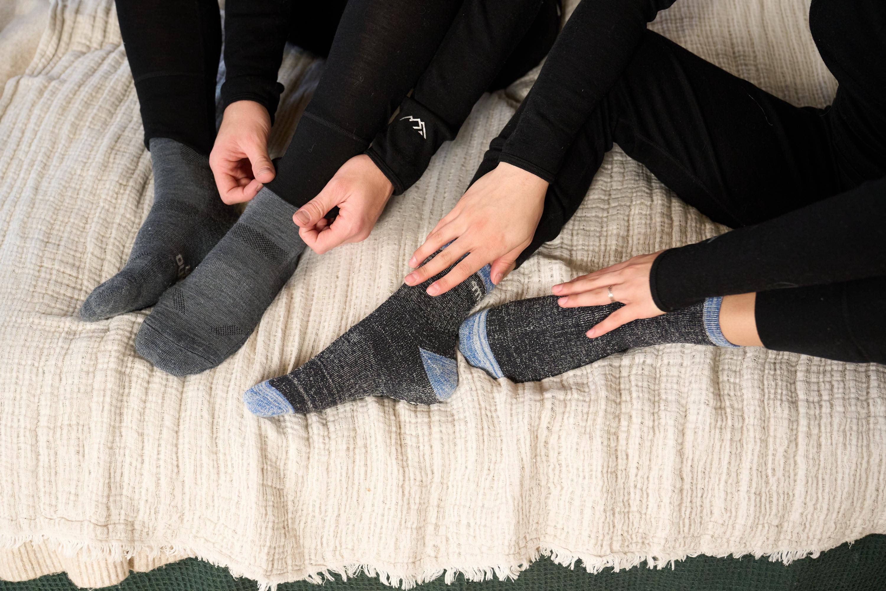 85% Merino wool, 13% Stretch Nylon, 2% Spandex - for best hiking experience. This exceptional composition makes these womens and mens wool socks perfect for outdoor activities as well as everyday wear in cold weather.