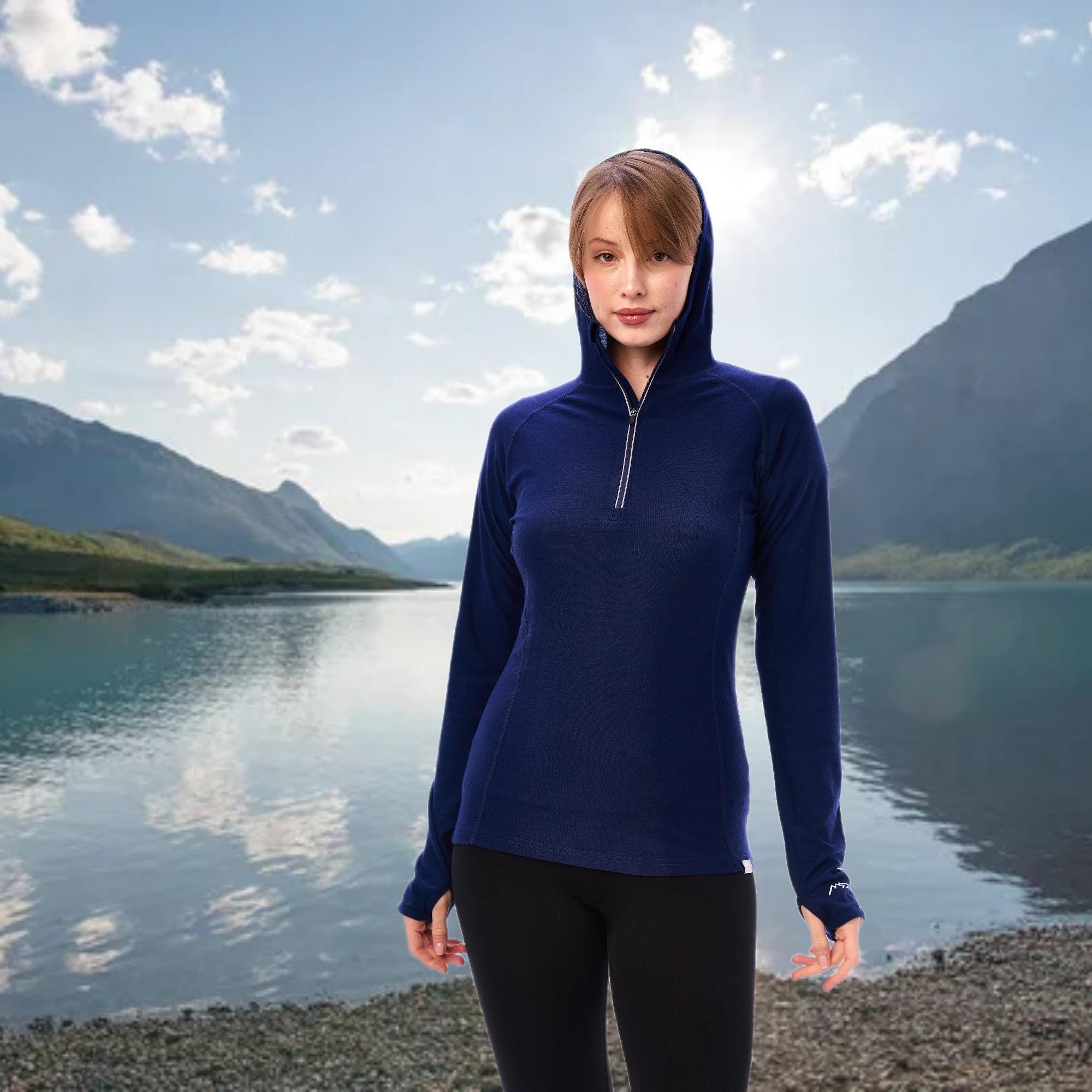 Stay warm and stylish during your outdoor adventures or gym sessions with our versatile lightweight hoodie. Crafted from high-quality merino wool thermal fabric, this half zip hoodie is a must-have for active women on the go. Designed to provide excellent moisture-wicking, insulation, and breathability, it keeps you comfortable whether you're hiking, running, or hitting the gym.
