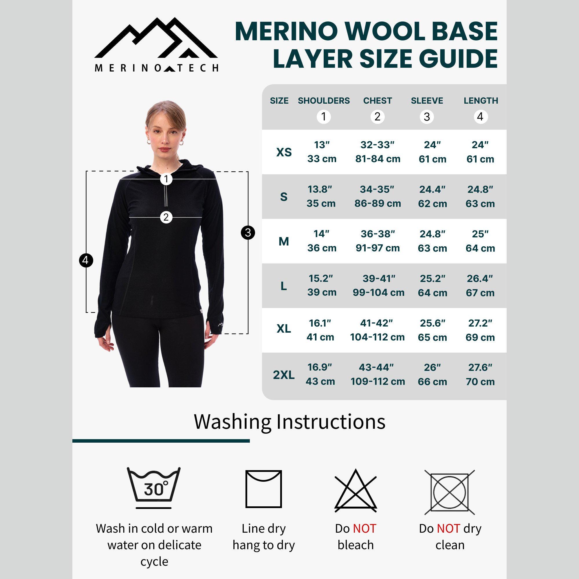 Merino wool, Lightweight 190 g/m² (grams per square meter) - 100% Superfine 19.5 Micron Zip Up Wool Hoodie for Women provides all day comfort and no itch! Designed for daily wear without rubbing, overheating, or bunching of regular cotton. The natural wicking and odor-resistant properties of Merino long sleeve top allow it to absorb moisture better than any other fabric, keeping you dry and fresh.
