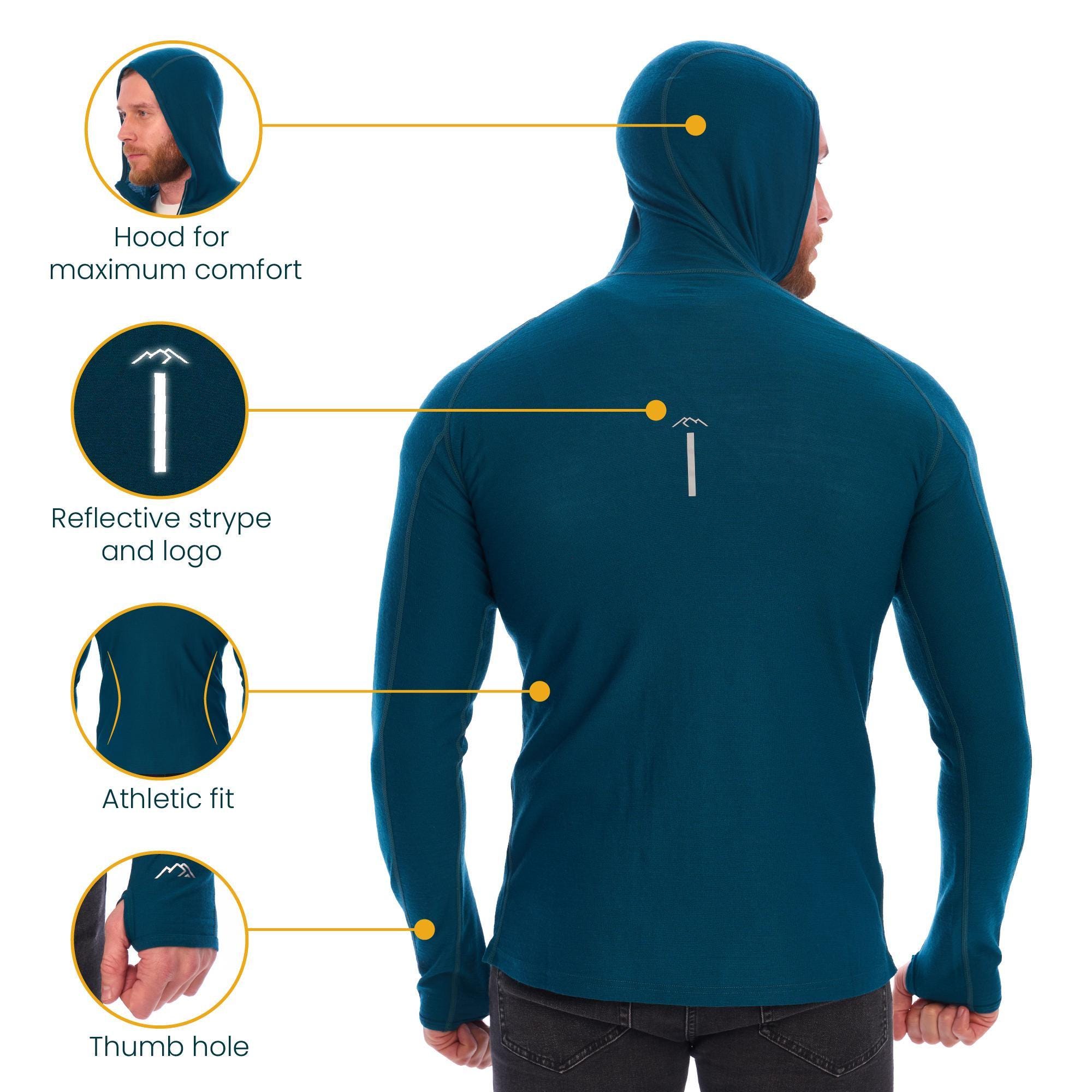 Whether you're conquering the trails or heading to the gym, this men’s merino base layer hoodie is your go-to choice for performance and style. Lightweight, packable, and made to move with you.