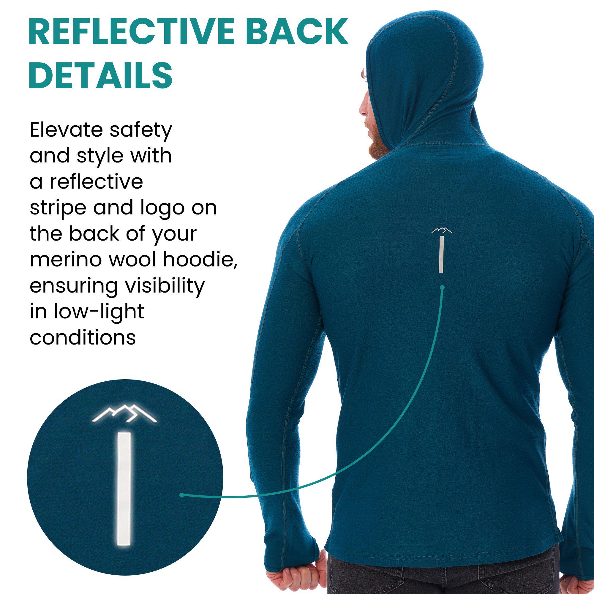 Whether you're hitting the trails, running errands, or working out at the gym, this men's thermal long sleeve hoodie is built to perform. Add it to your wardrobe to elevate your men's hiking clothes and stay comfortable and stylish wherever your day takes you. Embrace the benefits of merino wool with this versatile, high-performance hoodie!