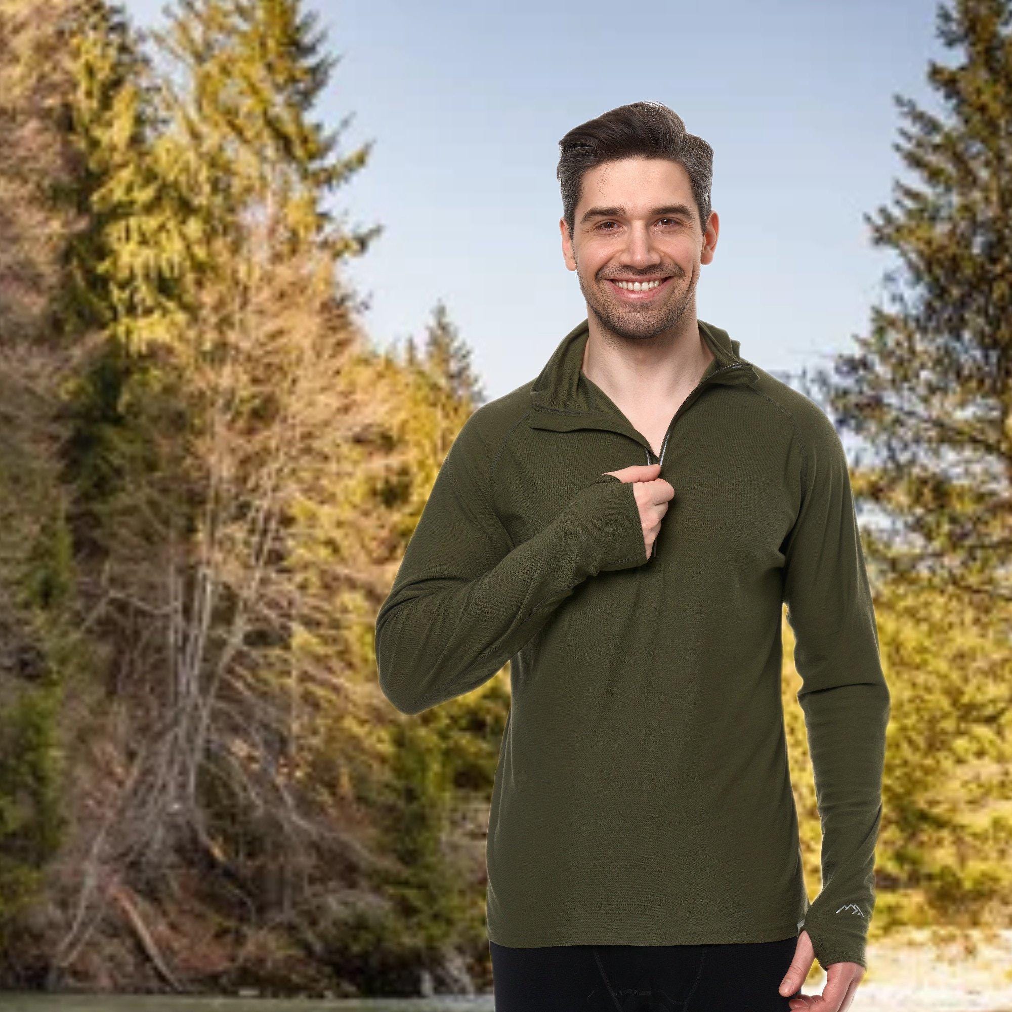 Blank Hoodie Half Zip Sweatshirt for Men – Lightweight Merino Wool Base Layer | Thermal Long Sleeve Gymwear & Hiking Clothes