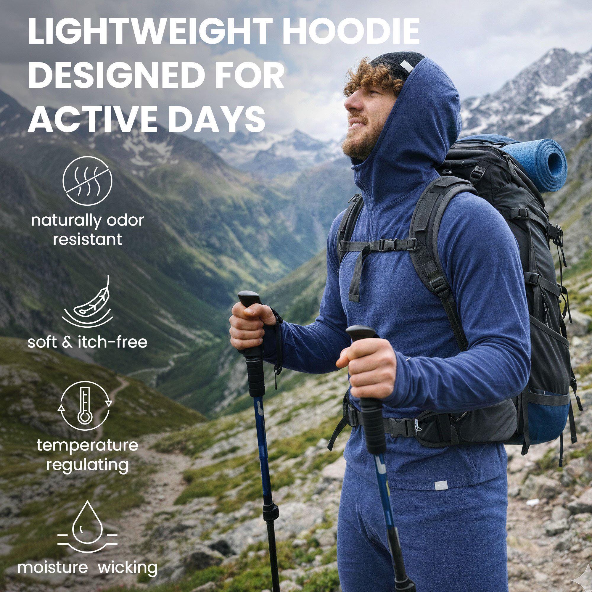 Add it to your wardrobe to elevate your men's hiking clothes and stay comfortable and stylish wherever your day takes you. Embrace the benefits of merino wool with this versatile, high-performance hoodie!