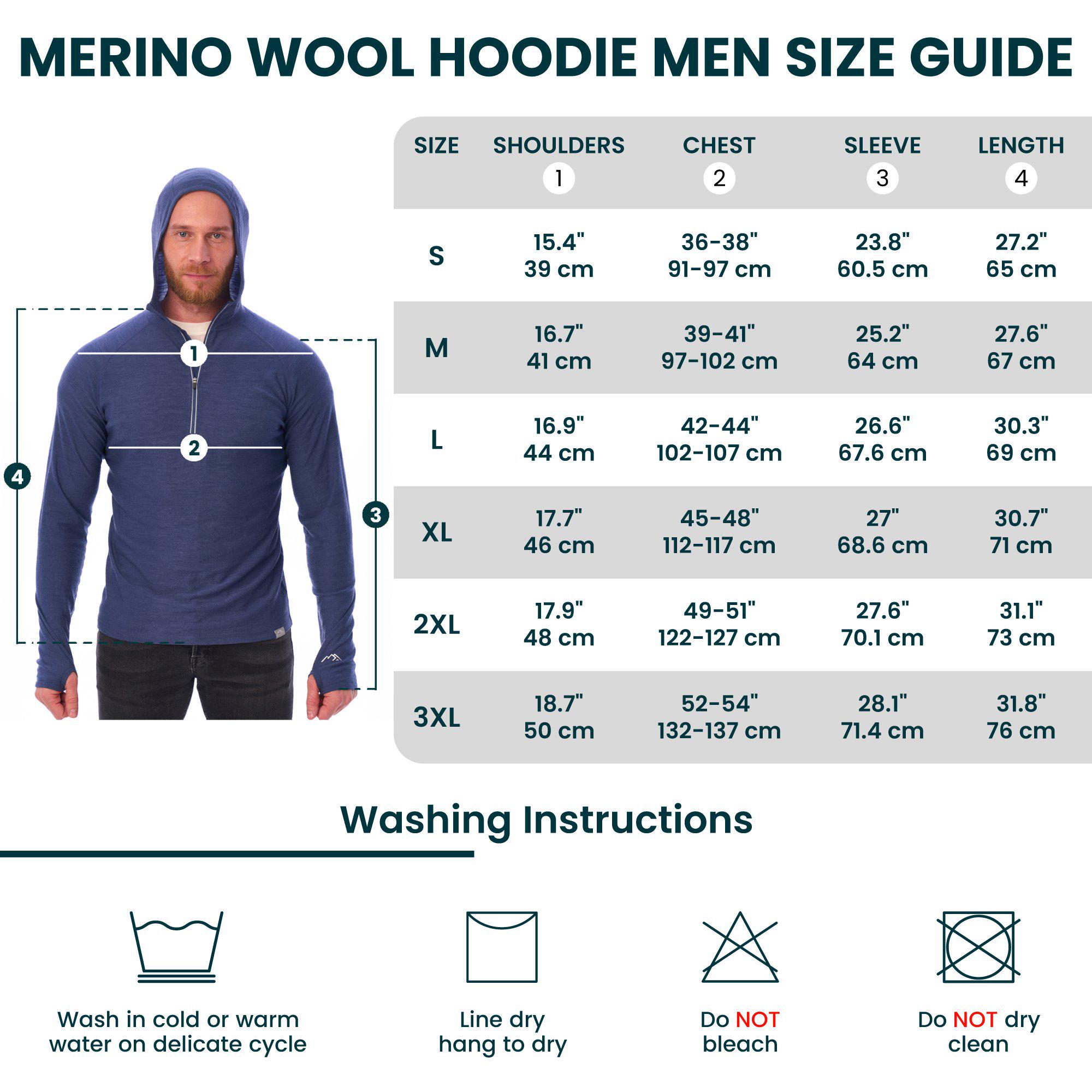 Merino wool, Lightweight 190 g/m² (grams per square meter) - 100% Superfine 19.5 Micron Zip Up Wool Hoodie for Men provides all day comfort and no itch! Designed for daily wear without rubbing, overheating, or bunching of regular cotton. The natural wicking and odor-resistant properties of Merino long sleeve top allow it to absorb moisture better than any other fabric, keeping you dry and fresh.