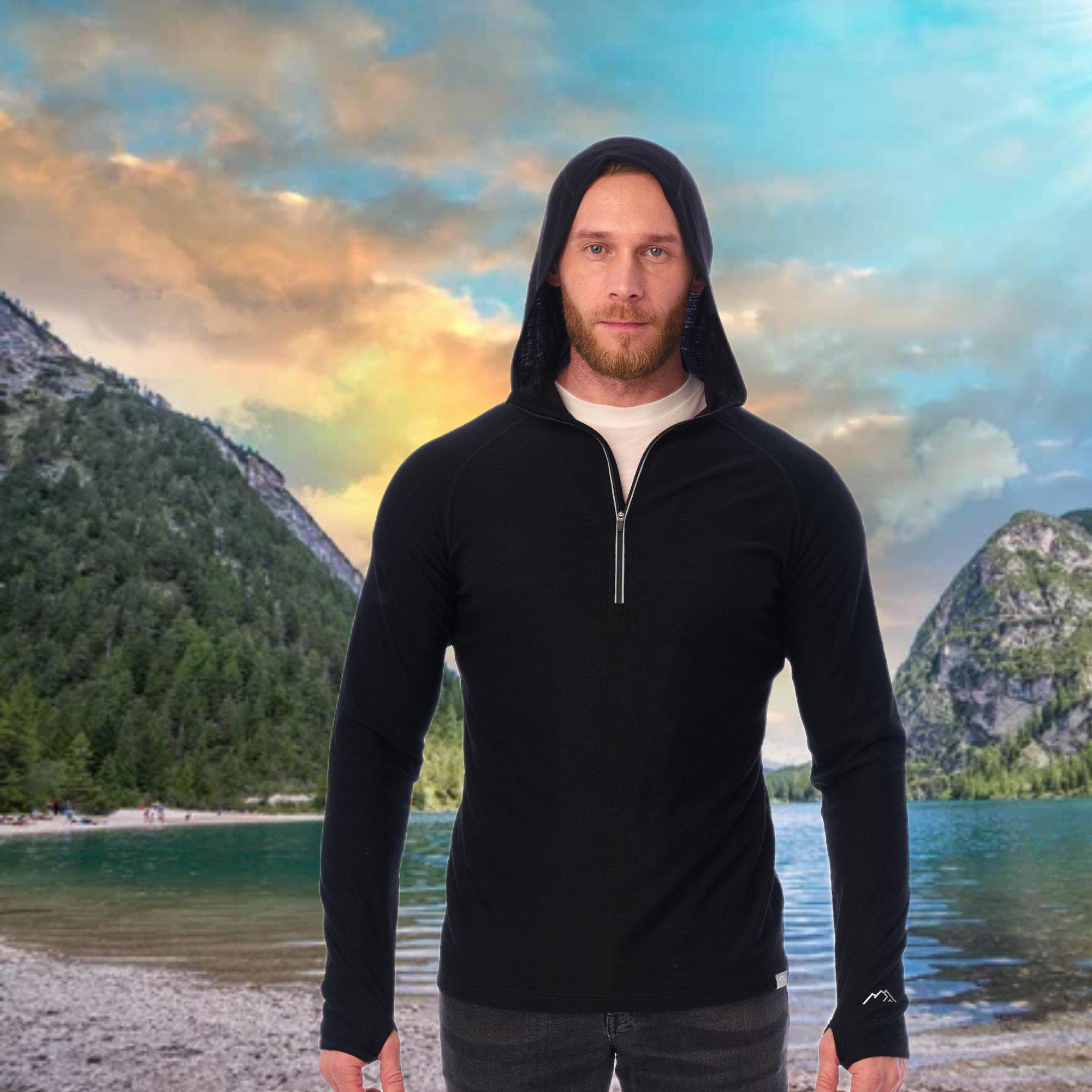 Stay warm, dry, and comfortable with our men's merino base layer hoodie — lightweight thermal long sleeve with half zip, perfect for hiking, gym, running, and outdoor adventures. Made from premium merino wool, this breathable and odor-resistant hoodie regulates temperature in any season.
