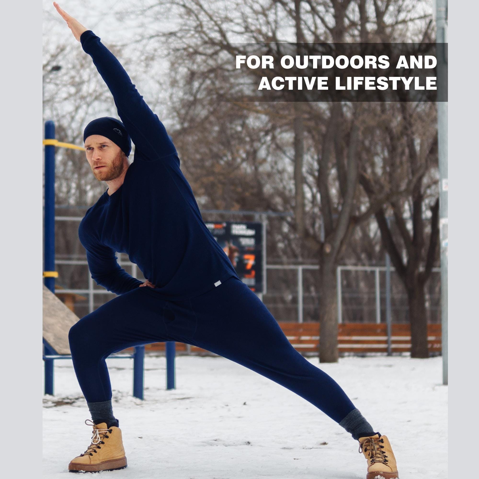 Stay warm and comfortable during cold weather activities with our premium Merino wool base layer set, featuring a thermal long sleeve sweatshirt and matching leggings. Designed for men, this versatile sweatsuit is perfect for sports, gym workouts, lounging at home, or layering under your everyday clothing. Crafted from 100% Merino wool, it offers a lightweight, breathable, and moisture-wicking experience that keeps you dry and cozy all day long.