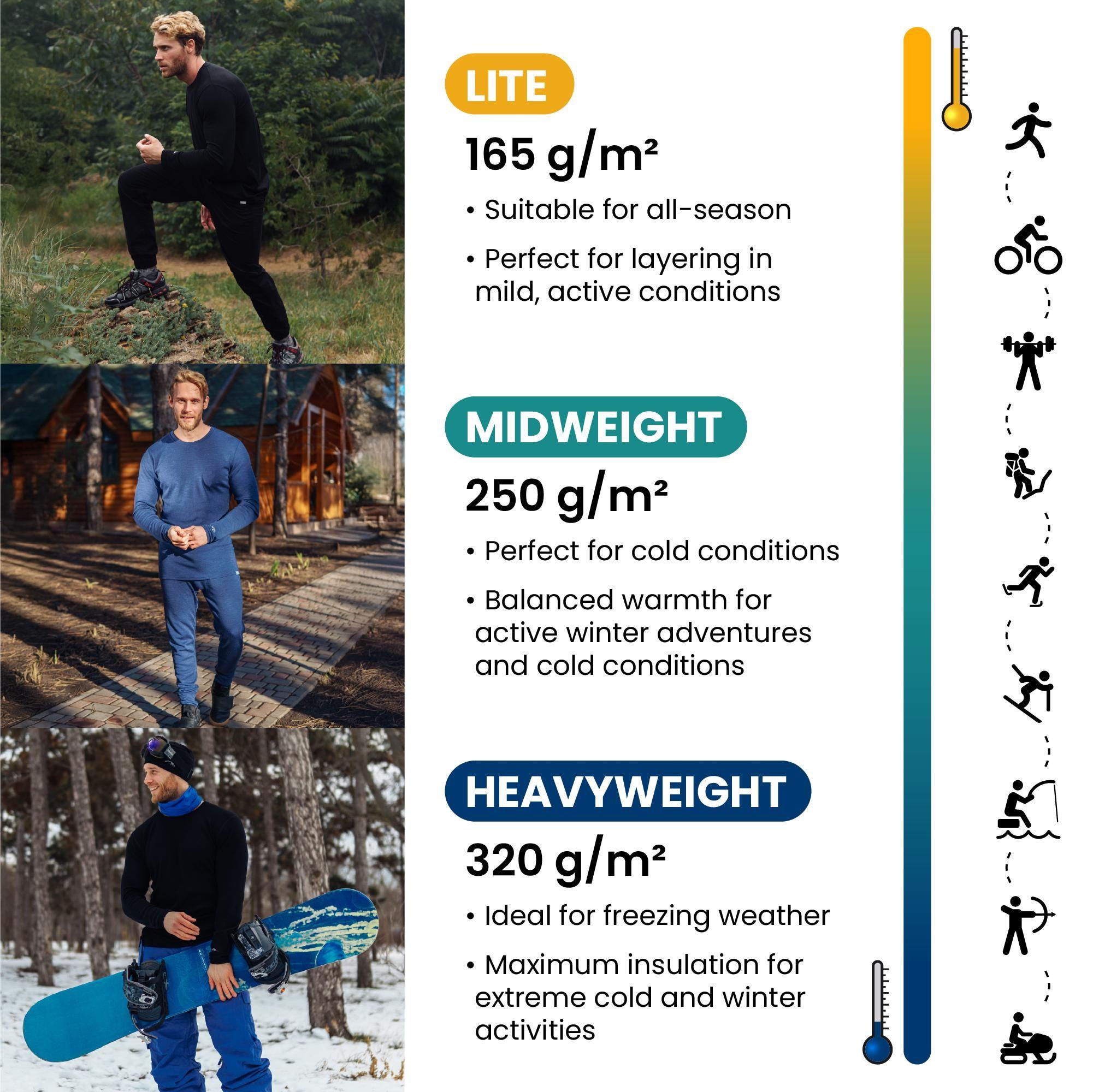 Package includes Merino wool base layer long sleeve Top Heavyweight 320 g/m² + Merino wool hiking socks.