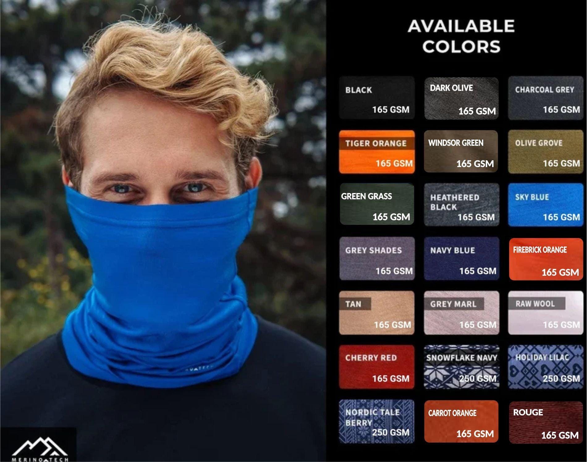 Merino Wool Neck Gaiter Face Mask - Winter Outdoors Neck Warmer for Men & Women /Organic Eco Sustainable Gifts