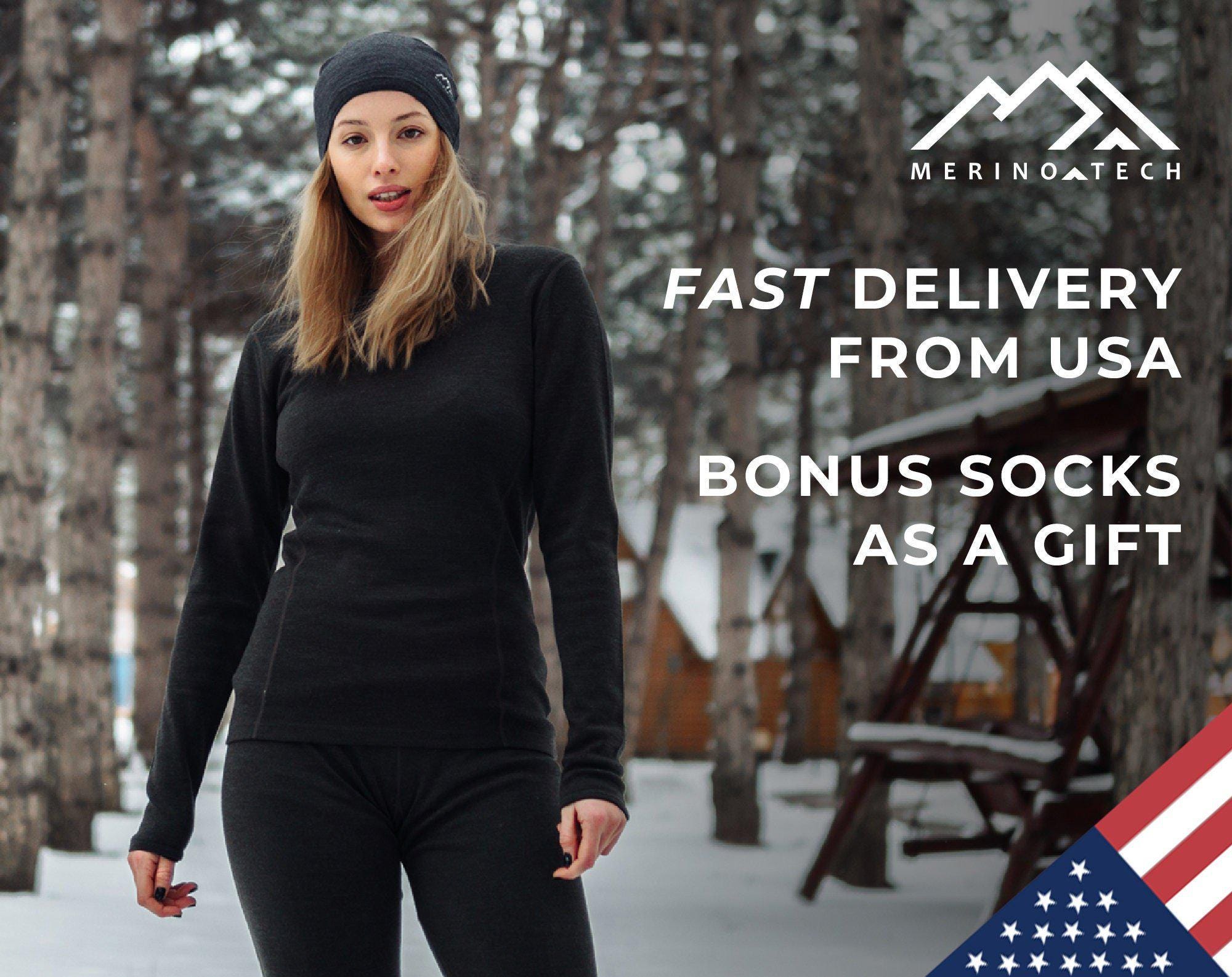 Package includes women Merino wool base layer midweight 250 g/m² + Merino wool hiking socks.