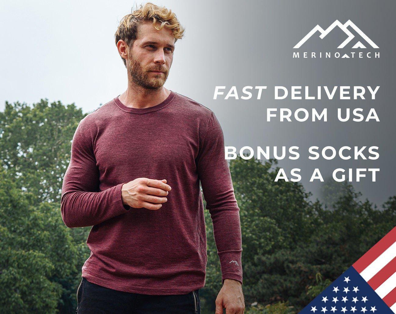 Merino wool, Lightweight 165 GSM (grams per square meter) - 100% superfine Merino fabric provides all day comfort and no itch. The natural wicking and odor-resistant properties of Merino long sleeve top allow it to absorb moisture better than any other fabric, keeping you dry and fresh.