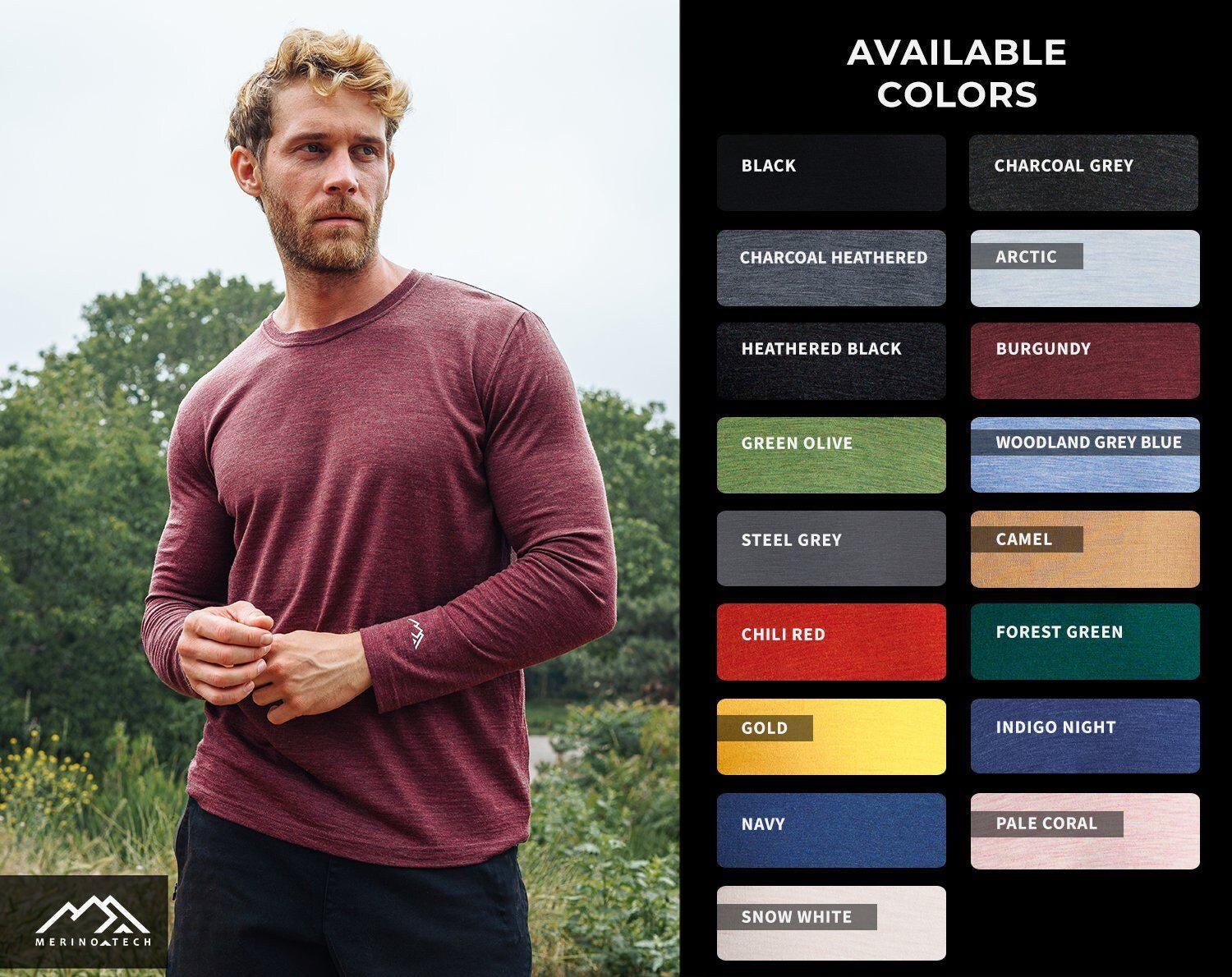 Merino base layer thermal shirts, merino wool shirt men's base layer thermal tops, thermal long sleeve undershirt, mens hiking clothes